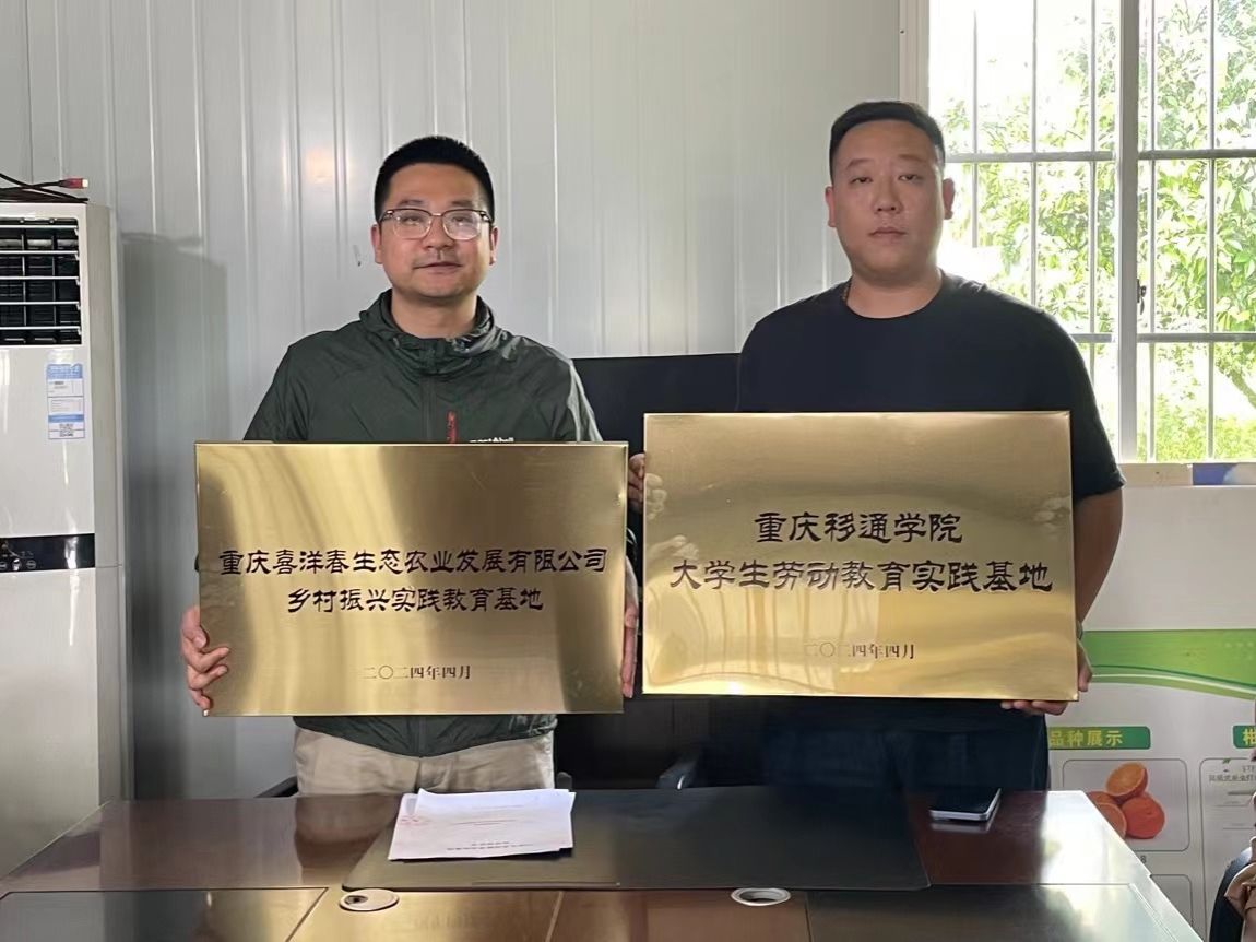 为积极贯彻落实中共中央国务院发布的《关于全面加强新时代大中小学劳动教育的意见》精神,多渠道拓宽劳动教育资源,发挥实践基地的育人作用,引导学生走出教室、跨出校园,在丰富多彩的“大思政课”中启智润心、激扬斗志。4月19日13点,重庆移通学院与重庆喜洋春生态农业发展有限公司在合川区钱塘镇大雅柑橘园签约共建大学生劳动教育实践基地。马克思主义学院中国近现代史纲要教研室主任李阳、教师代表唐菊相、靳银霞、杨佳欣、李汶静携近30名学生代表参与了此次活动。
