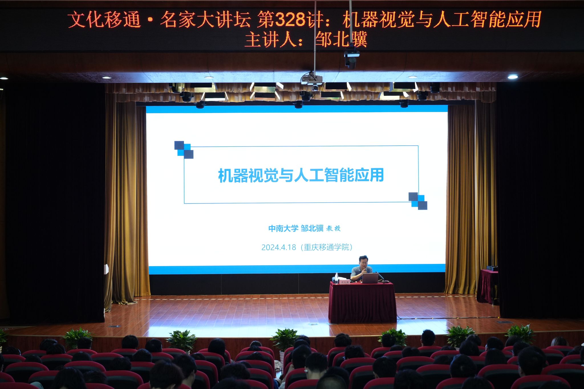 双眼是人类探索世界智慧的重要窗口,同理,人工智能的发展也需要一双认识世界的慧眼,于是诞生出了机器视觉。机器视觉将真实的世界化作数字和波段,记录在云端世界中,供人们更加理性和便利地认识世界。4月18日下午16点,邹北骥教授做客“文化移通——名家大讲坛”,在下里巴人剧场开展了题为《机器视觉与人工智能应用》的讲座,为同学们讲解机器视觉的发展与运用,探索人工智能发展的前沿。