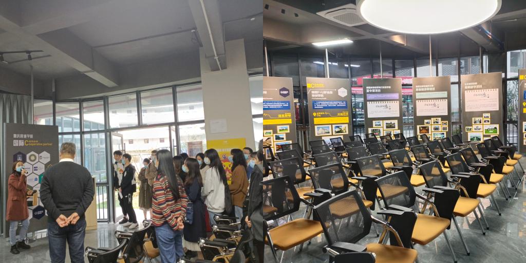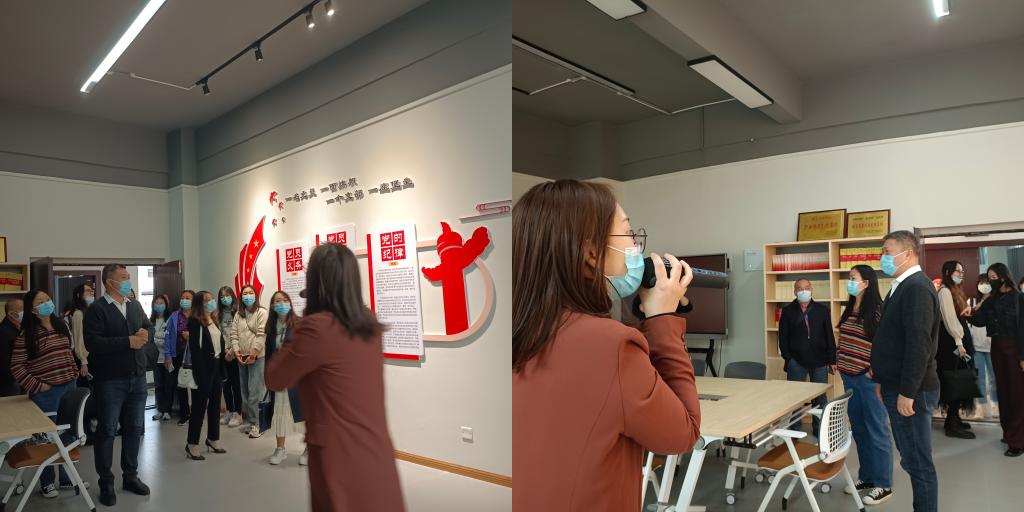 南湖书院综合办主任齐旭老师带领我们参观了国际文化展厅,介绍了集团为拓展师生全球视野而举办的海外研修项目。展厅内展示了很多师生去国外游学的经历,彰显我校国际化办学特色。