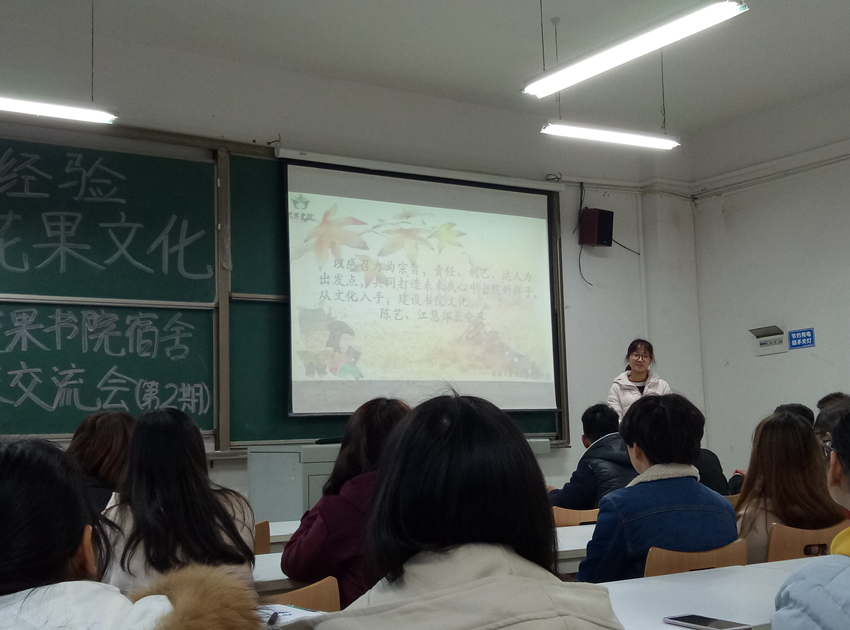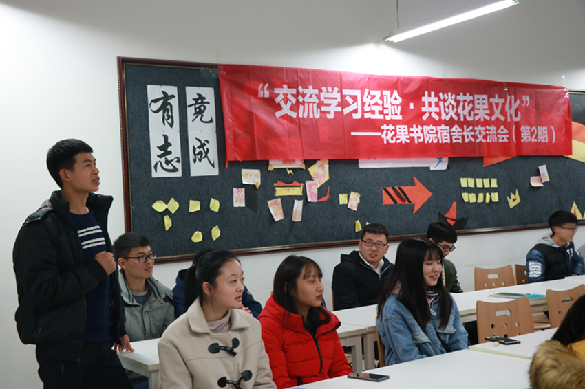 转眼到了本学期的第16周,凛冽寒冬,期末将至。大家是否还在为期末考试而做最后冲刺呢?花果初生,知心相伴。大家是否真正了解花果书院呢?花果书院学生自治委员会于2017年12月20日下午17:00在中德应用技术学院6102教室举办了第二期宿舍长论坛。