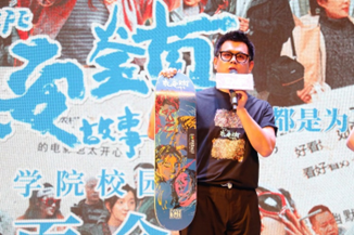 面对热情的观众,影片主创们耐心地解答着大家的问题,分享了影片创作过程中的经历,并深深感谢了移通学子对这部电影的喜爱,向在场的观众赠送了他们精心准备的伴手礼:《永安镇故事集》的海报以及独一无二的滑板。魏书钧导演也通过滑板送给大家一句话:“希望大家能像滑板一样把生活踩在脚下”。