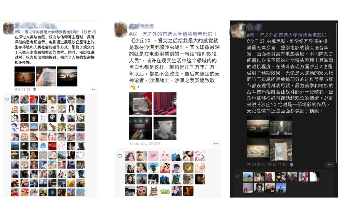 我校开展“四位一体双院制+特色课程”的人才培养模式,科幻教育纳入我校特色教育,拥有亚洲最大的科幻大楼,旨在全面校园化培养学生的想象力和创造力。科幻电影作为一种特殊的电影类型,融合了科技、未来、人类命运等诸多元素,具有极高的思考价值和观赏价值。因此,本月为同学们选取了充满科幻色彩的影片《沙丘2》,让同学们踏上了一段充满未知与探索的宇宙之旅。
