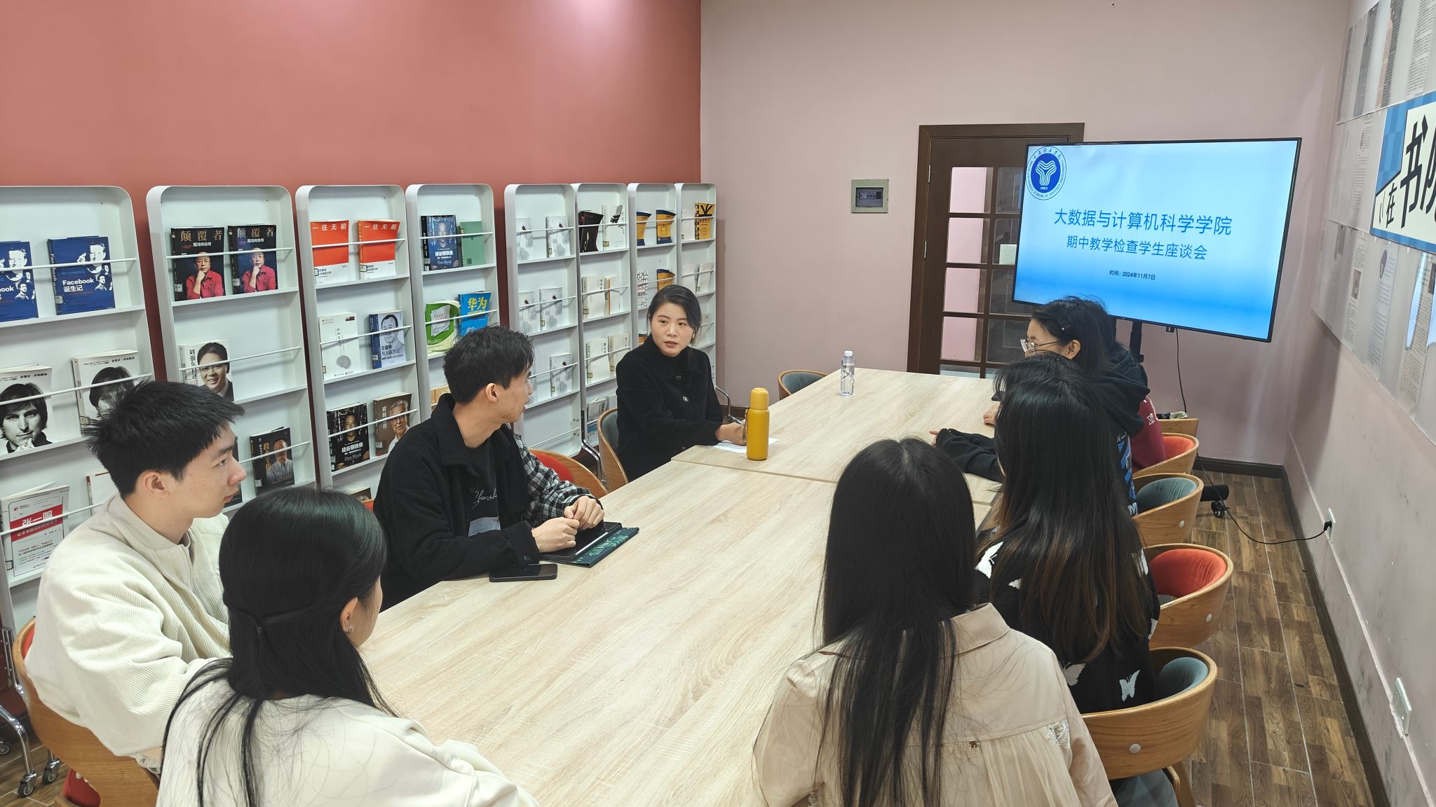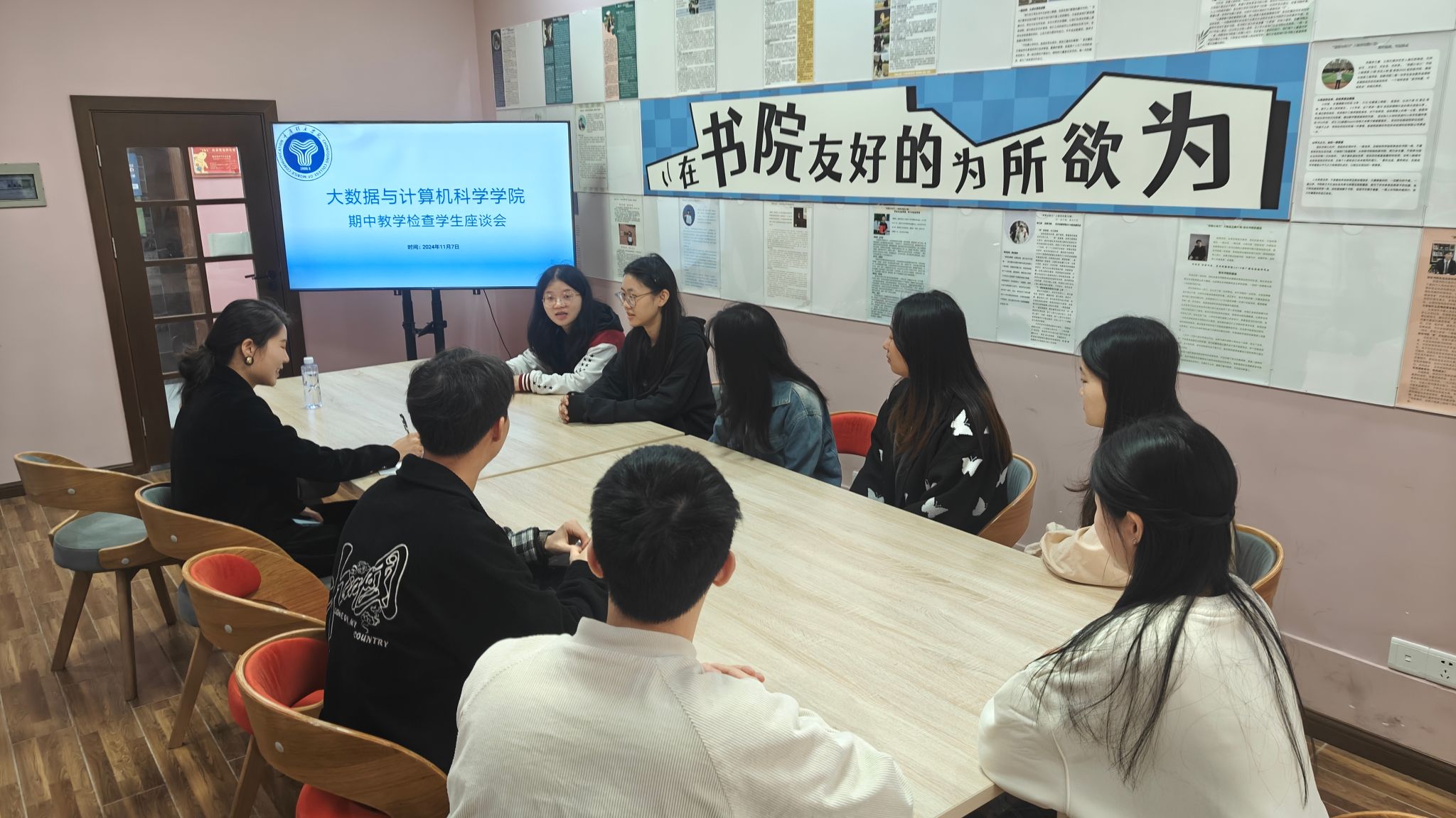 为进一步规范教学行为,强化教学管理,确保教学质量稳步提升,并营造积极向上的教风与学风,大数据与计算机科学学院于11月7日上午11:00至12:00,在别都书院青领课堂召开了2024-2025-1学期期中教学质量检查学生座谈会。此次座谈会旨在广泛听取学生意见,针对教学过程中的问题与不足进行深入探讨,为后续的教学改进提供有力依据。