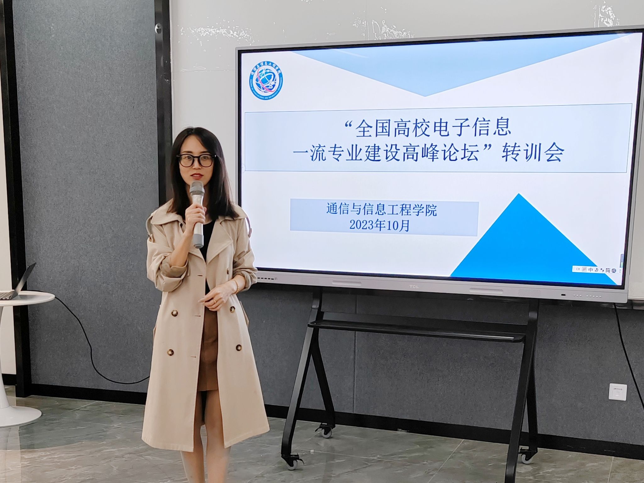 9月22日,通信与信息工程学院院长李文娟与教学处处长高飞、教研室主任邓华阳及专业负责人余晓玫一行4人,共赴新疆大学参加了由教育部高等学校电子信息类专业教学指导委员会主办的“全国高校电子信息一流专业建设高峰论坛”。为将学习成果更好地用于专业建设实践,10月11日下午,学院在南湖书院的中德创意工坊(193)召开了“全国高校电子信息一流专业建设高峰论坛”转训会。此次会议由通信与信息工程学院院长李文娟分享高峰论坛会议内容和学习体会,学院相关专业建设老师参加。