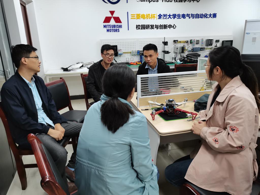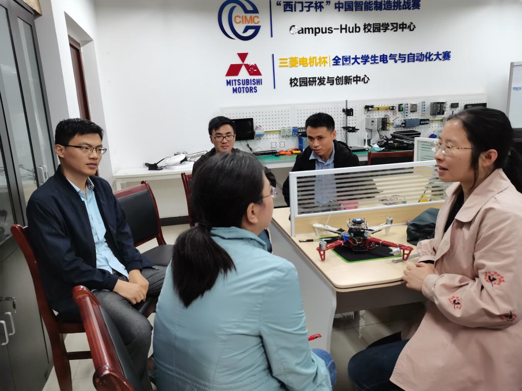 王雪介绍了目前重庆大学自动化学院学科竞赛方面开展的工作,重点介绍了正在筹备的中国机器人大赛的无人机赛项。陈龙灿介绍了我校参加“西门子”杯中国智能制造挑战赛和中国机器人大赛的情况,对我校目前正在设计制作的自主无人机方面的经验进行了介绍。双方师生自由交流学科竞赛的经验,并就竞赛的筹备、软硬件支持、创新能力培养等深入探讨。