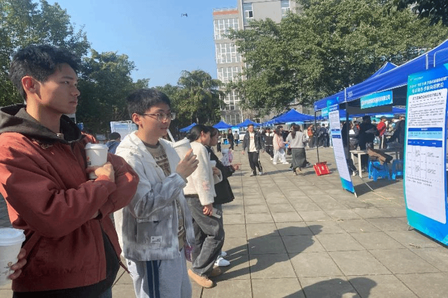 异科导师马碧红与异科导师杨文君与多名同学来到了学校南校区黄桷树下招聘会现场。大家就根据自己的兴趣,开始对招聘公司和招聘岗位进行了解,同时对部分岗位职责和招聘需求进行了详细的调查,对未来自己的专业规划进一步有了清晰的认识。
