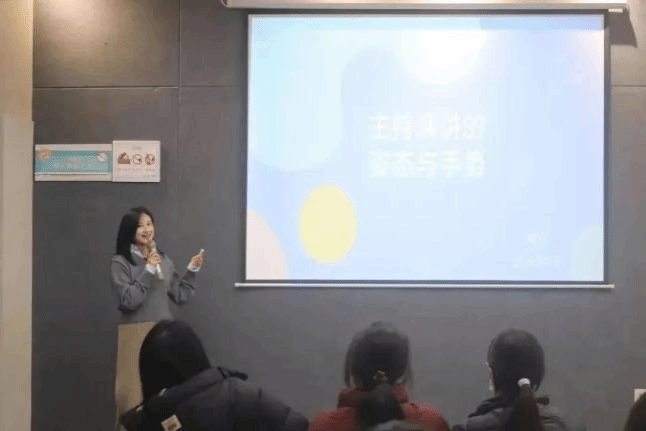 异科导师邓巧为助力学子提高主持的形象,掌握演讲的姿态与手势技巧,提高个人综合素质。在活动中邓巧老师表示:一场成功的演讲,首先要有一个良好的姿态。发言人给观众的第一印象是十分重要的,这就需要塑造专业形象,展现自信与权威,以此来提高演讲效果。通过邓巧老师对于主持演讲的姿态与手势方面的悉心教导,相信同学们将不再惧怕上台演讲,迈上一个新的台阶。