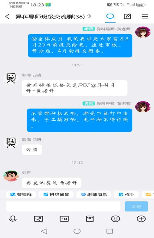 异科导师蒋成侠坚持以学生需求为导向,持续保持着与学生的高频互动与沟通,每日密切关注同学们在实践报告填写上的进展,对即时产生的疑问予以迅速回应和切实的帮助。