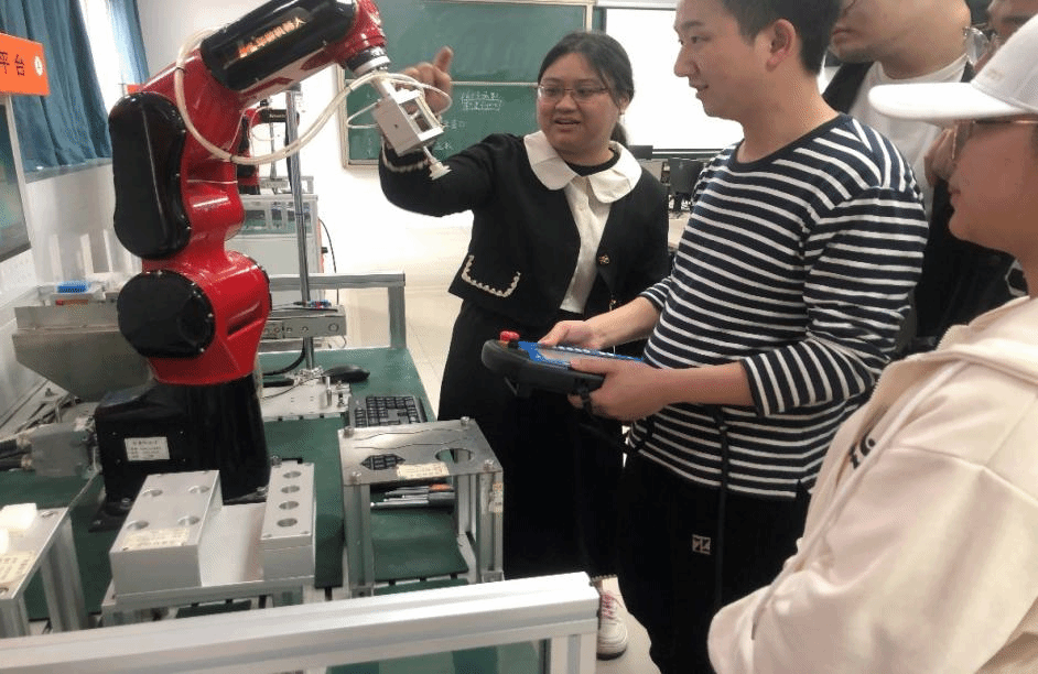异科导师管悦与外国语学院、淬炼商学院的异科导师刘艳平、刘佳音老师联合开展以“探索未来科技:工业机器人示教编程体验活动”为主题的异科导师活动,活动以机器人示教与机器人控制系统仿真为主要任务,一方面讲解工业机器人的结构、运行原理与如何操作,一方面也通过三个学院的学生友好互动,提升学生在专业与智能制造方面的认识。