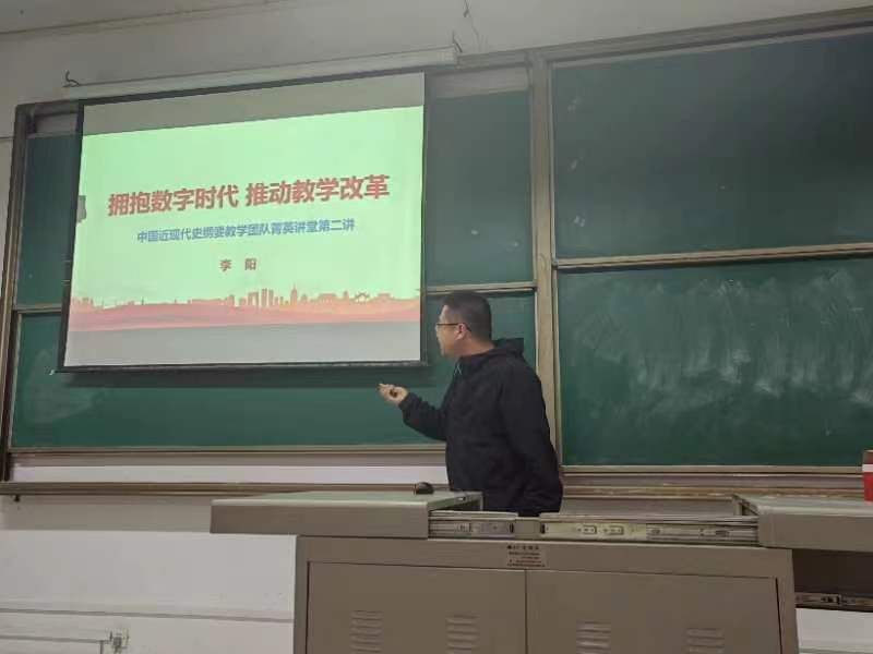 为进一步深化课堂教学改革,提升团队教师的信息化教学能力,实现信息技术与课堂教育教学深度融合,4月10日下午3点,马克思主义学院《中国近现代史纲要》课程教学团队在1210教室开展“菁英讲堂”第二讲活动,本期主讲人李阳老师围绕“过去 现在 未来——数字化智慧课堂案例汇报”做主题分享,团队全体成员参加。