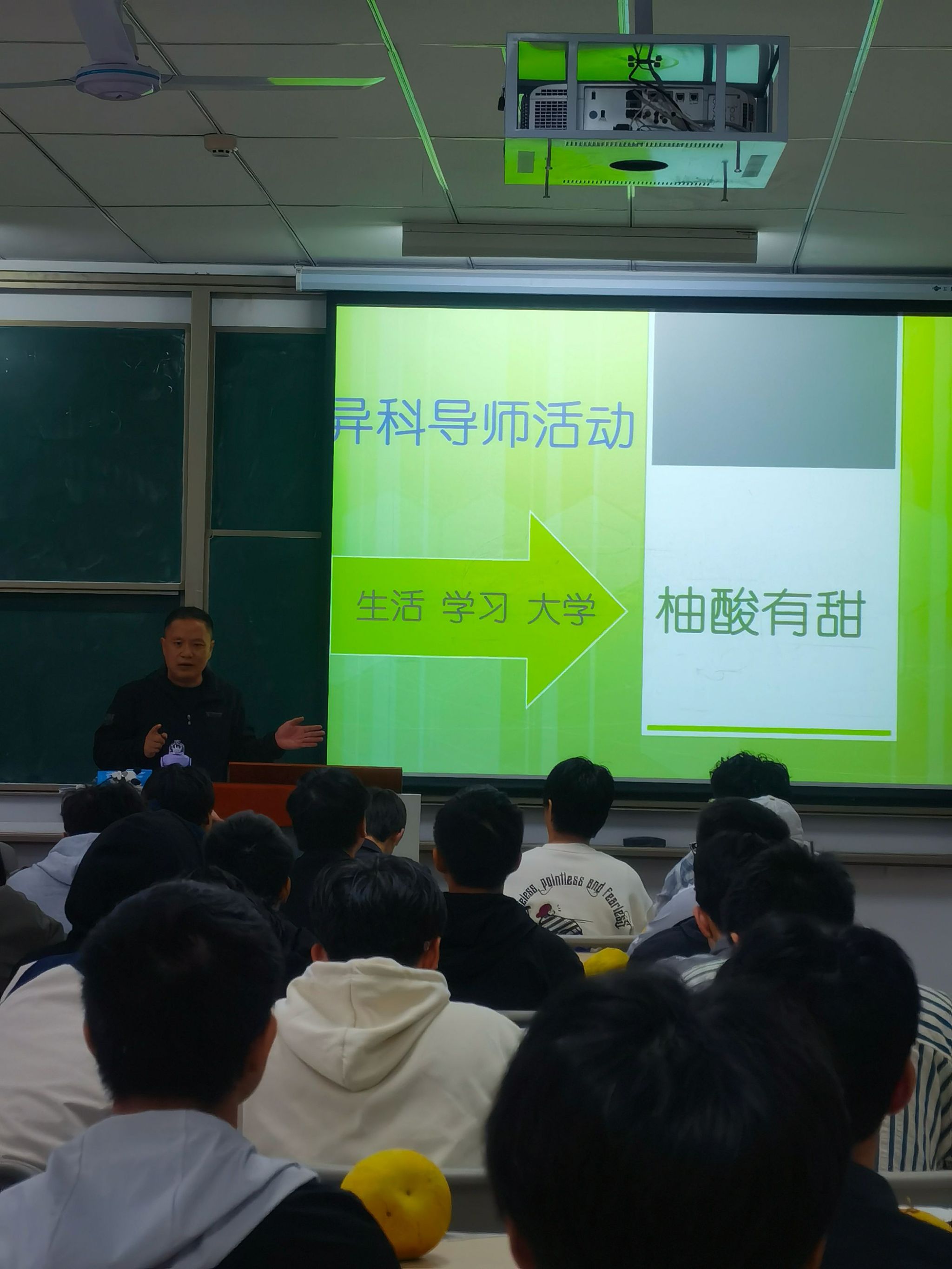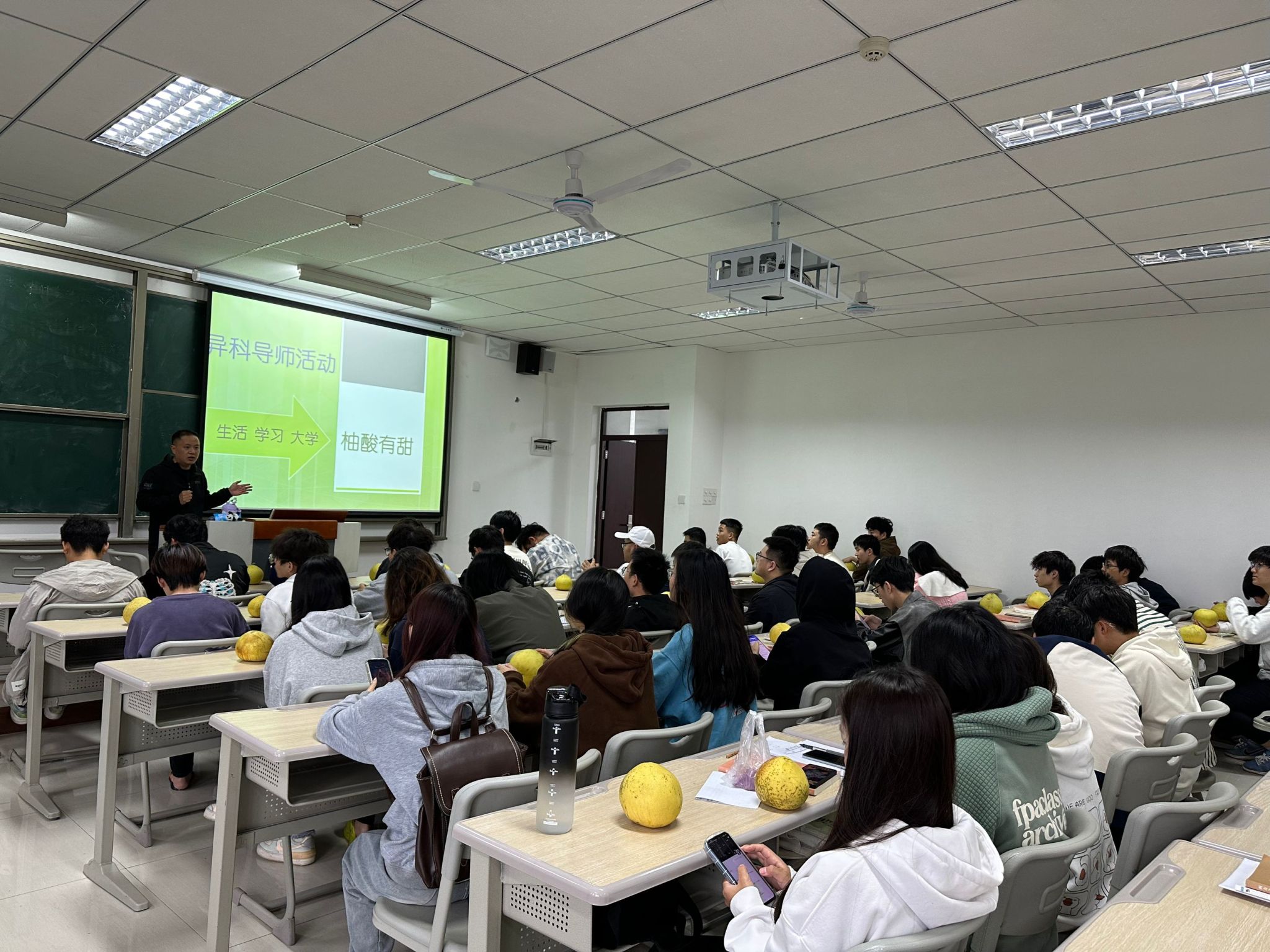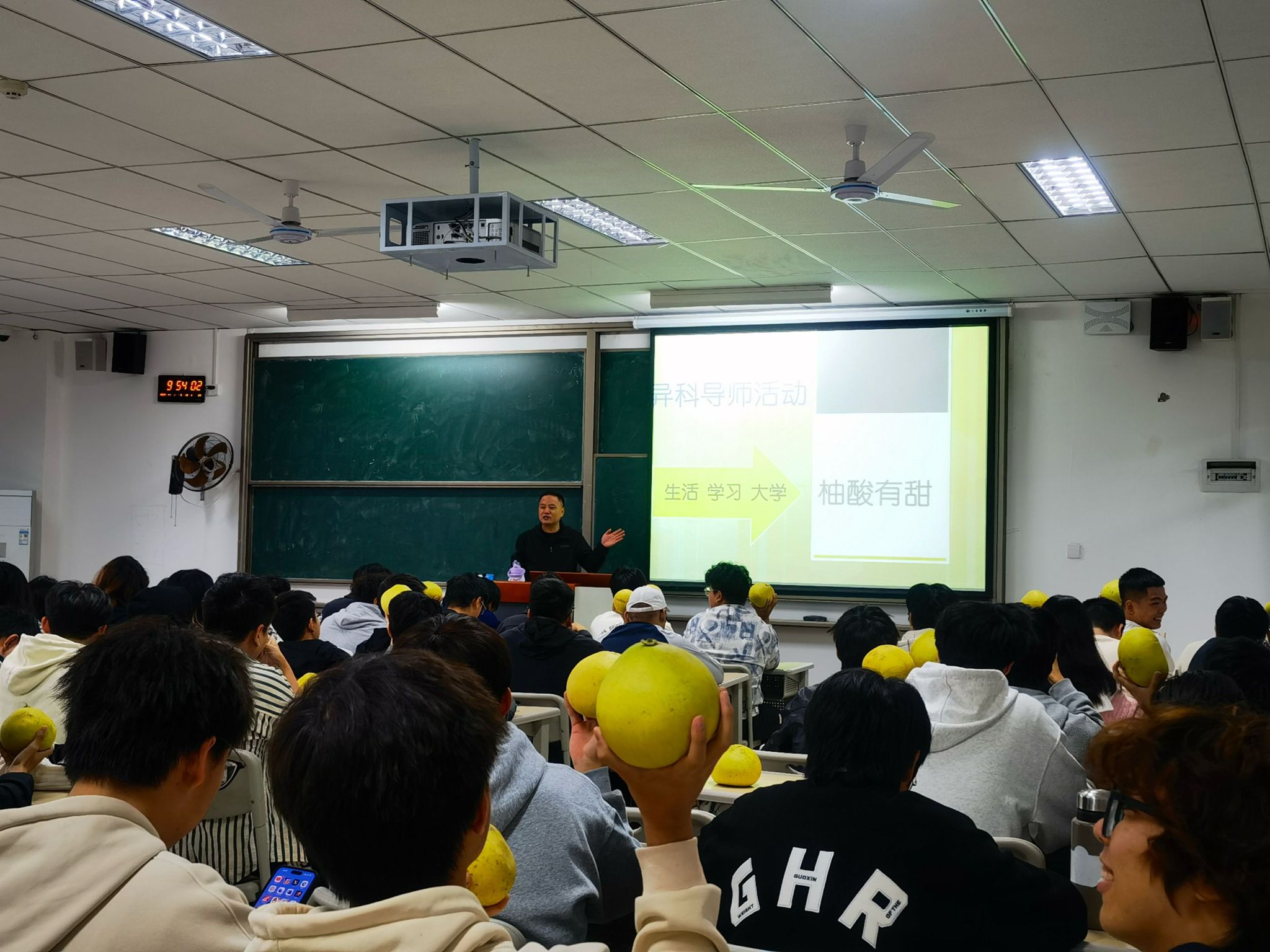2024年11月1日上午,异科导师唐文春老师在9213教室成功举办了一场主题为“柚香满室,共话成长”的异科导师活动。本次活动由唐文春老师精心策划并主持,自动化1-2班的75名大二学生积极参与,共同度过了一个充满温情与启迪的美好时光。