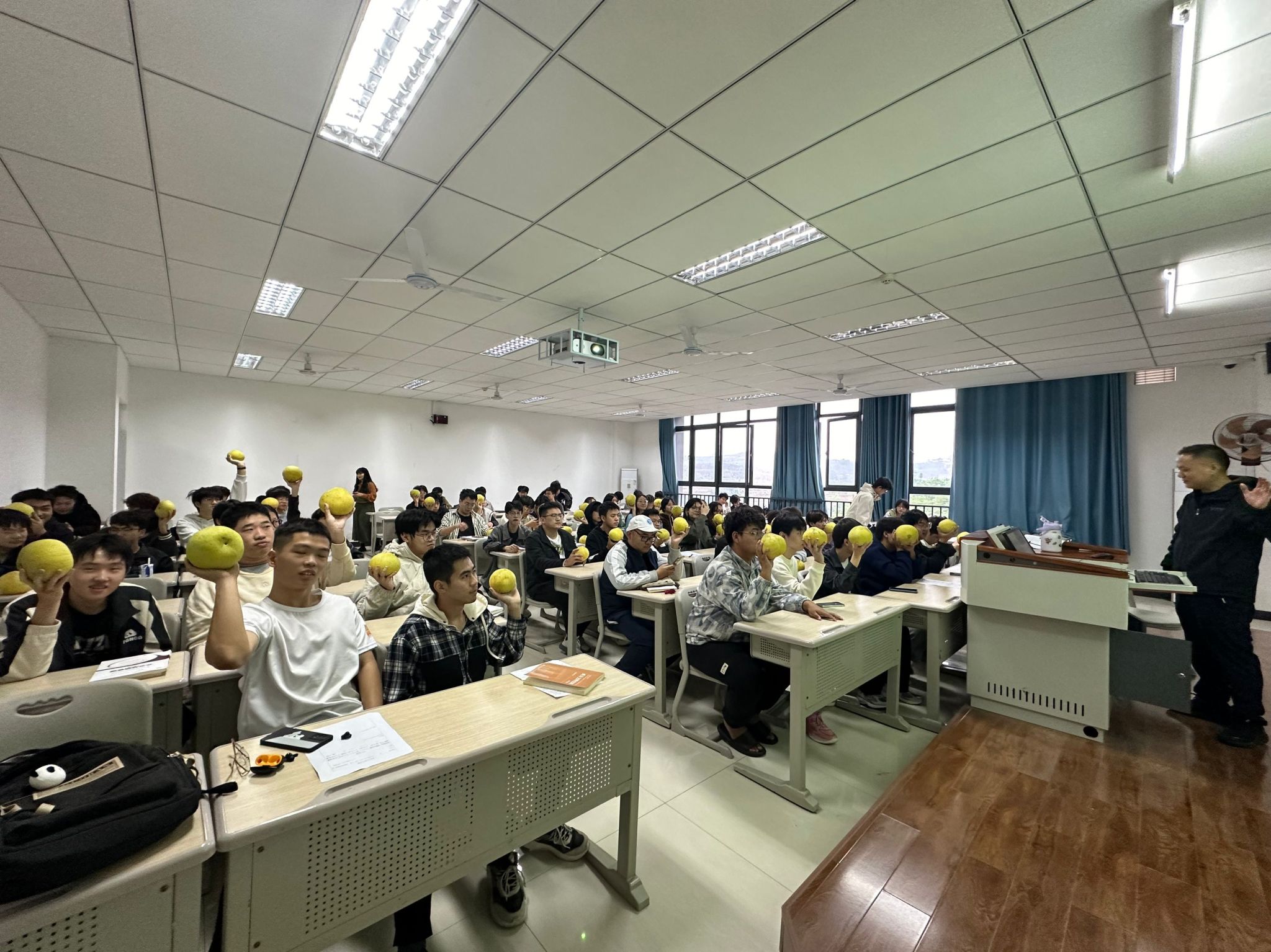 活动开始前,唐老师为每位同学准备了一个圆滚滚、金黄色的柚子,寓意着大学生活的丰富多彩与酸甜苦辣。同学们手捧柚子,脸上洋溢着期待与喜悦,准备在接下来的分享中畅谈自己的大学生活体验。