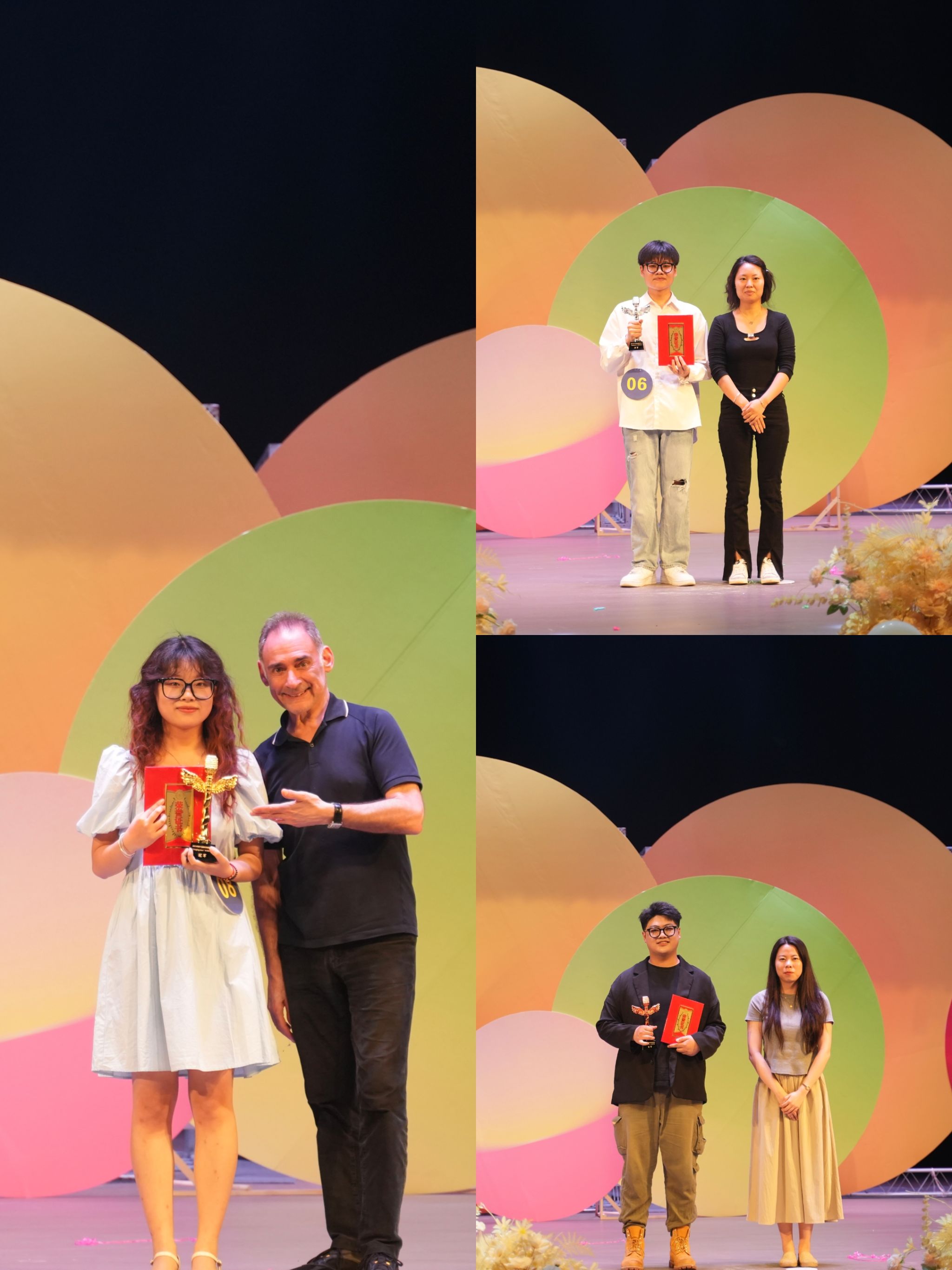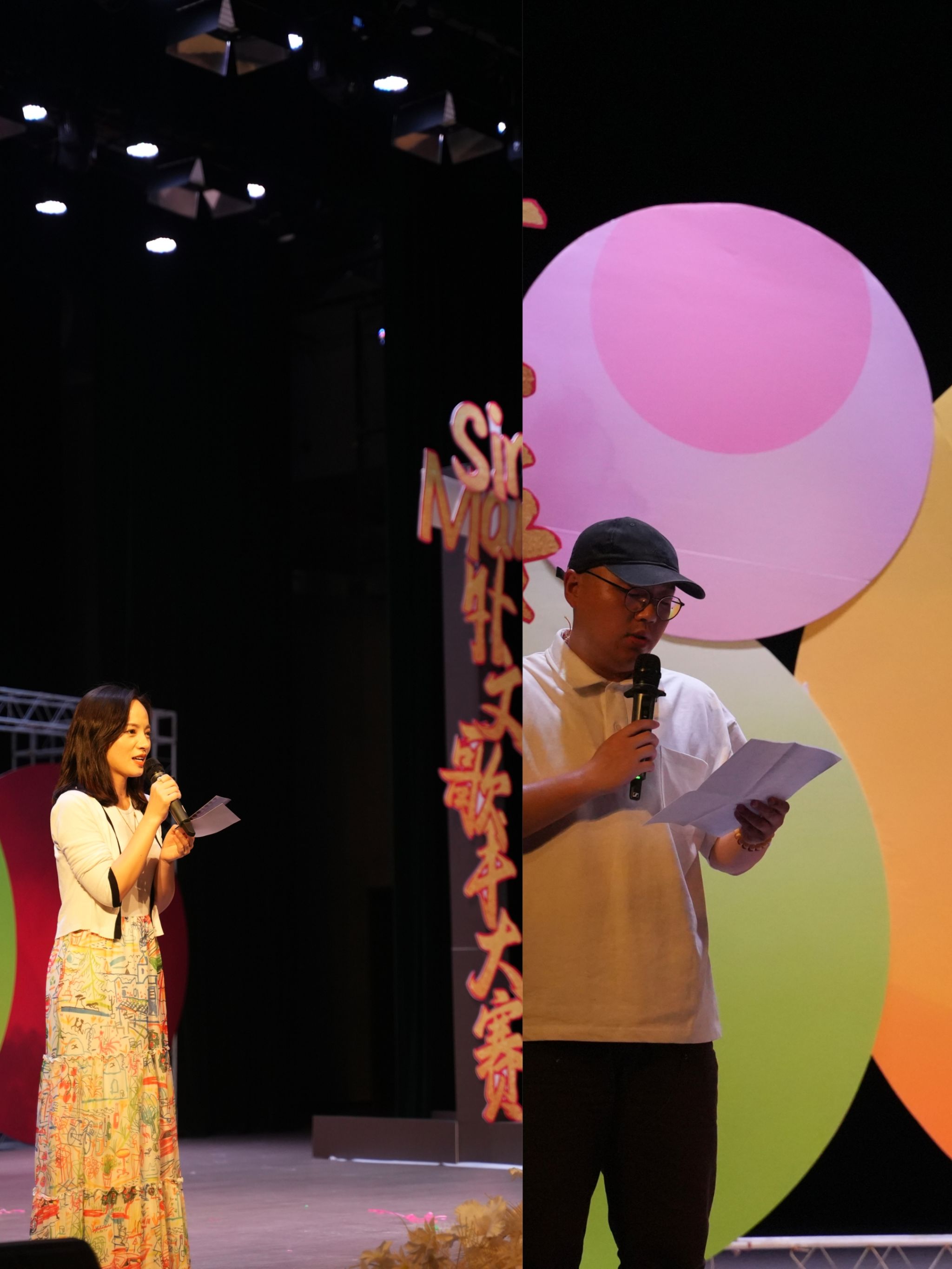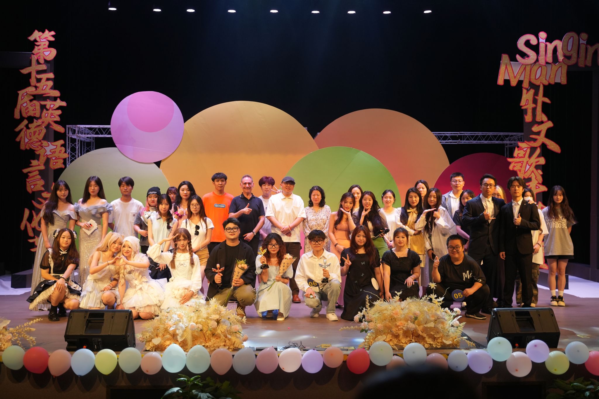 4月28日,由外国语学院举办的第十五届英德语言文化节之外文歌手大赛在缤果大剧院圆满落幕。此次大赛我们请到了外国语学院学工副院长马喆老师、外国语学院英语教研室讲师杨沁霏老师、外国语学院人气外教Clive、校团委综合事务中心杨婕老师、艺术教育中心声乐指导老师罗宇宏老师、钓鱼城科幻学院声乐教师黄丽萍老师、钓鱼城科幻学院国际部主管万诗雨老师担任评委,感谢来自各个部门评委老师的聆听。