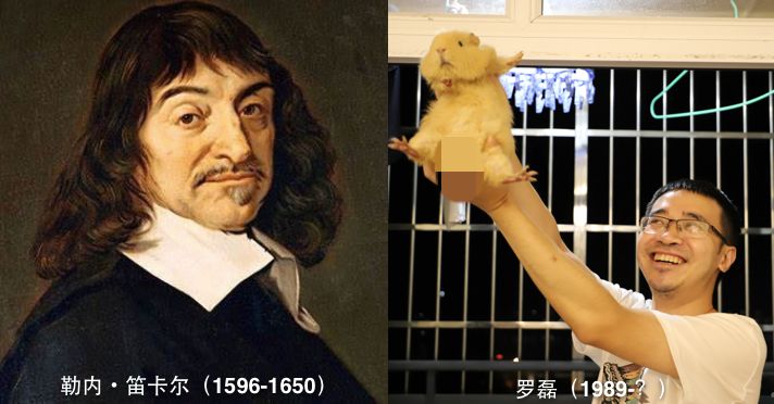 由于“我思故我在”的陈述中带有引人误解的“因果关系”——“我思考,所以我存在”。罗老师特意强调,“我思故我在”的真实含义为:“我”必然蕴含着能思维这一性质,我作为能思维的东西而存在。“我思”和“我存在”之间并非因果关系,而是类似于“包含”的演绎关系,就像我们说:三角形本身蕴含着一个性质,即内角和为180°。因果联系可错,而演绎必然为真。经由确定无疑的第一原理“我思”,必然推出蕴含了“我思”的“我”在。(没被最后一句话绕晕的朋友,哲学念个研考虑一下?)