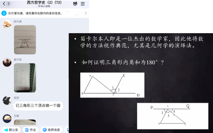 同学们在教学群里进行证明;罗老师在ppt中给出解答。