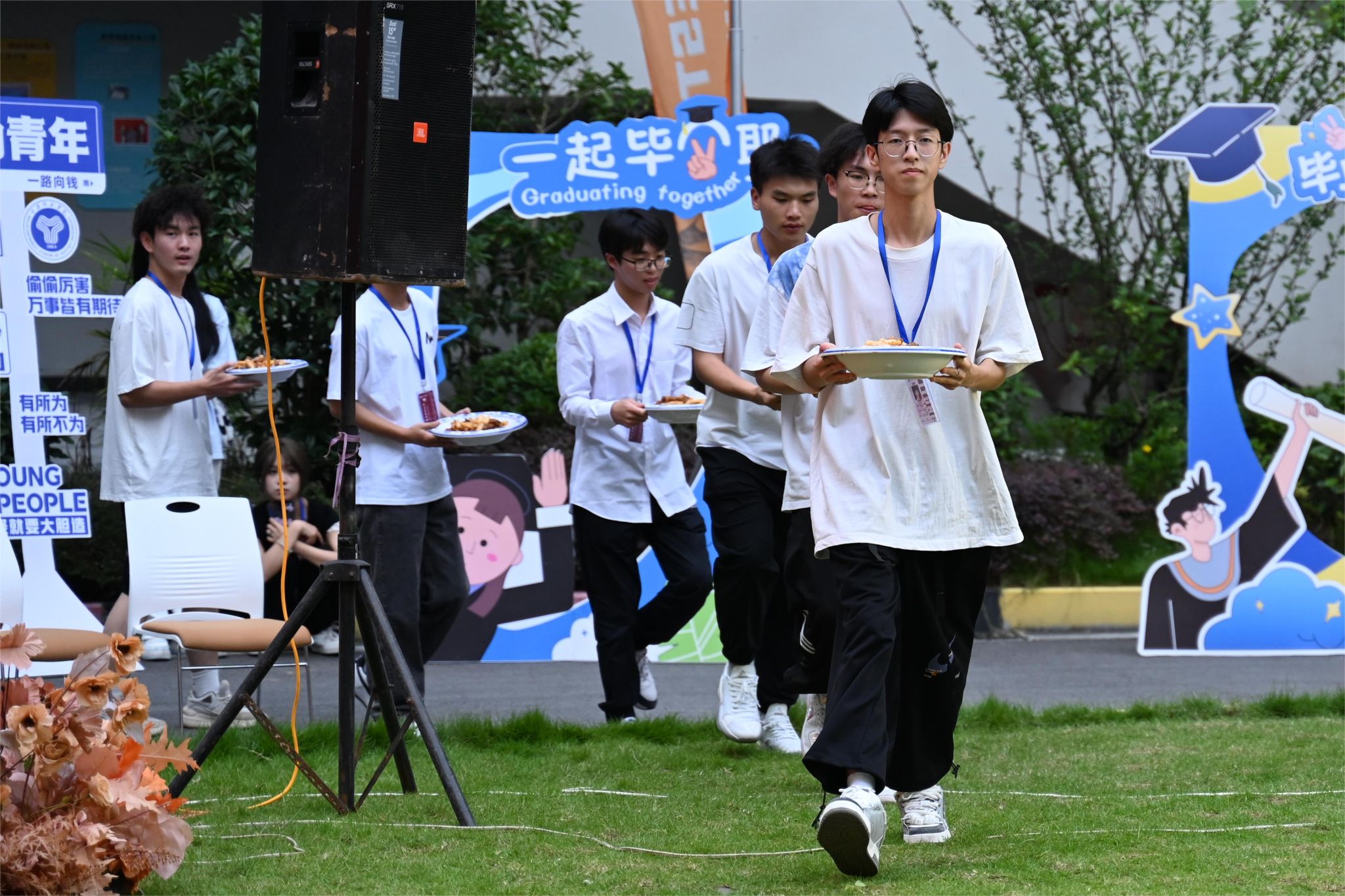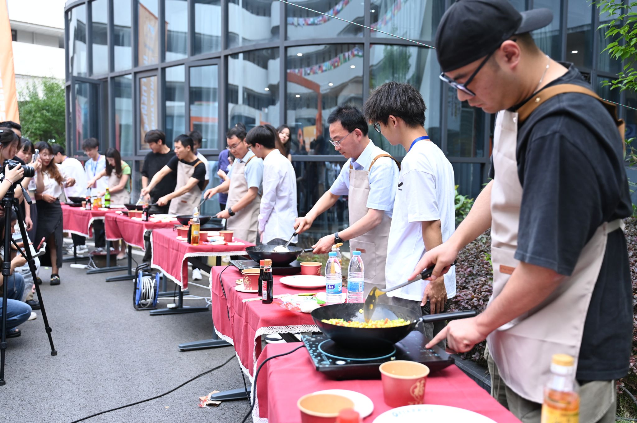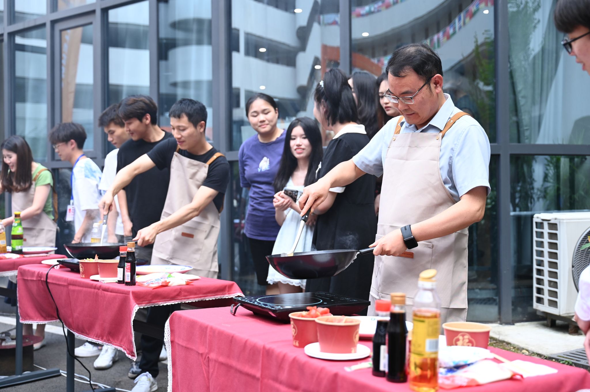 在现场,我们邀请了六位领导嘉宾,重庆移通学院校长吕翊教授,校党委书记何先刚教授,以及完满教育各职能部门负责人、毕业班辅导员代表,亲自下厨,为现场的毕业生们制作六个拿手好菜,表达对毕业生的祝福和期待。家人们一同忙碌、烹炒,他们一边忙碌,一边同围观的同学们交谈心得和生活的智慧,让现场的气氛更加温馨和谐。
