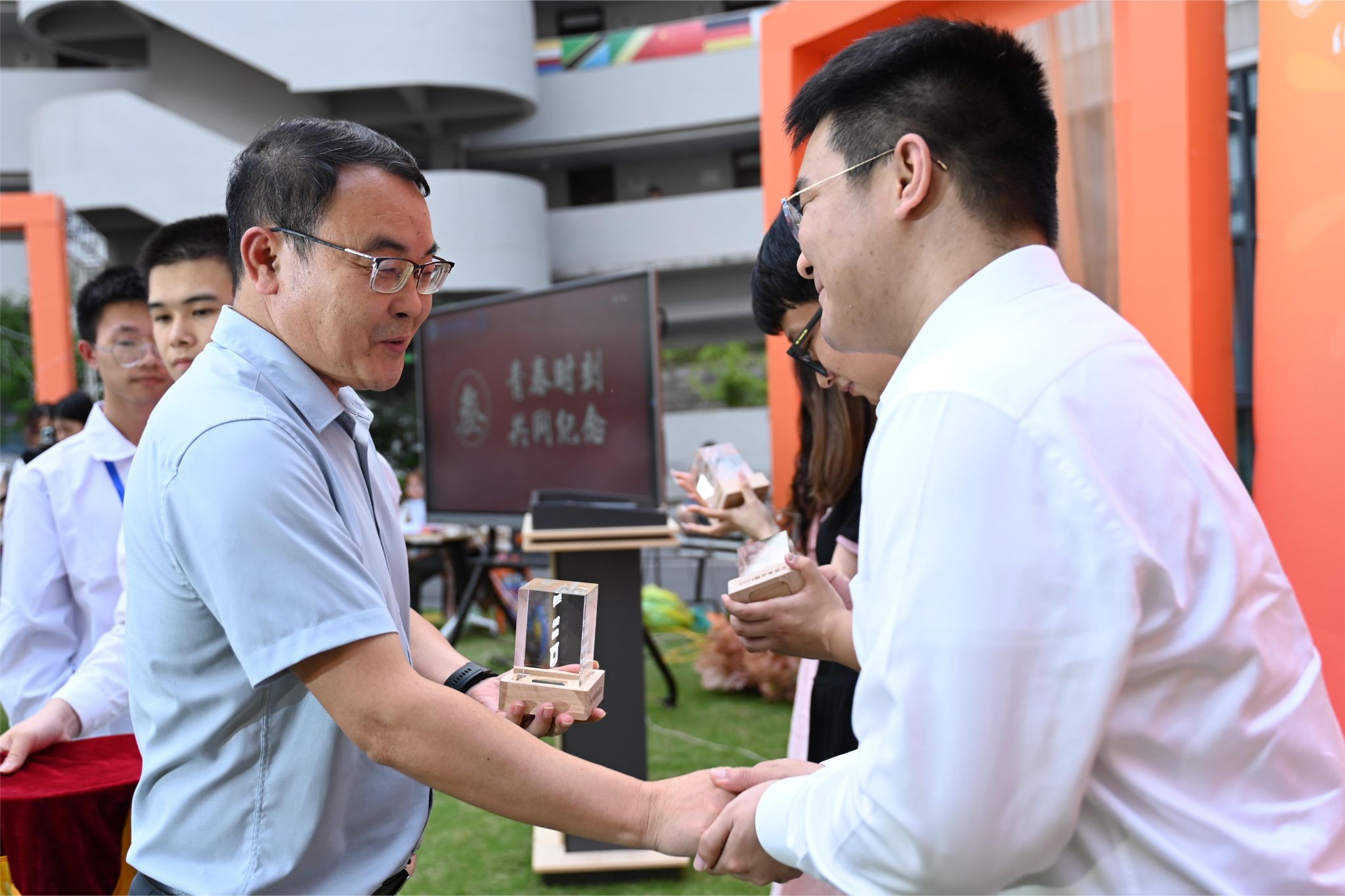 青春的荣耀闪闪发光,每一份的纪念品都承载着厚重的含义,是学校对毕业学子的浓情祝福,也是记录青春的定格之物。校长们也为四位学生代表和各位在场毕业生送上了今晚花漾家宴、共话团圆的纪念品,向学生代表们赠予浓情祝福。