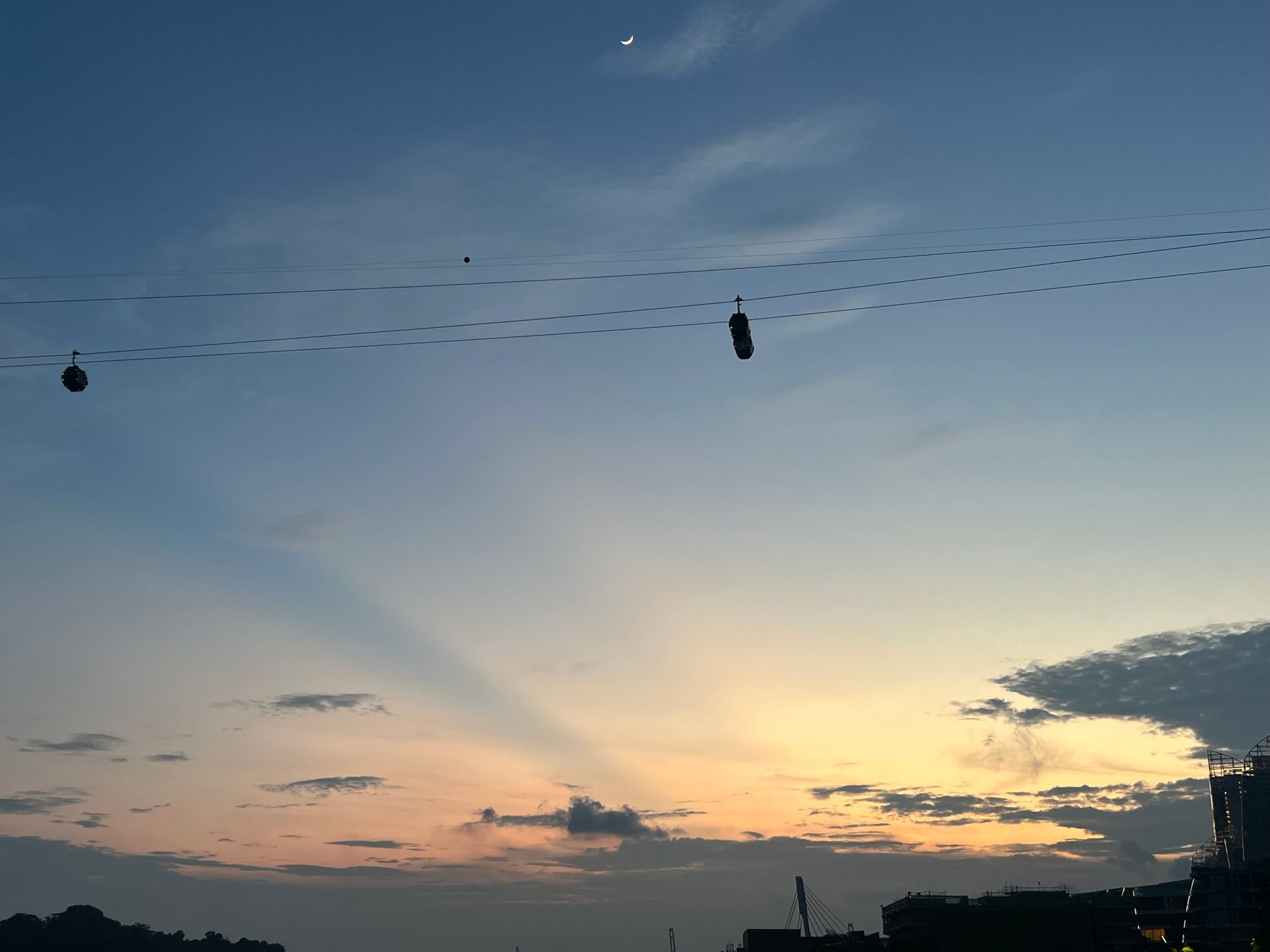 傍晚时分的夜色总是引人陶醉,缓缓下落的夕阳让人心旷神怡,晚饭后的大家漫步与桥边,橙黄色的夕阳像葡萄酒般,把整个黄昏浸在微微的醉意里,云朵也在向我们贩卖着温柔。经过一天的相处,原本不认识的团队成员渐渐褪去了才相见时的陌生,此刻在落日黄昏的映射下,各自交流着到达新加坡后的首日感受。