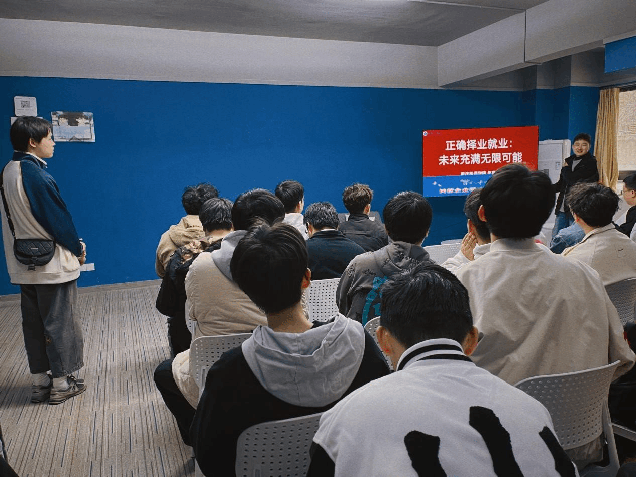 异科导师蒋成侠讨论内容涵盖了考研、工作实习情况、面临的挑战以及应对策略,并着重探讨了毕业去向和未来的工作规划,专门针对学生们的毕业进程和就业意向进行精准指导。协助解决他们在毕业设计、求职准备等方面遇到的具体问题,引导他们理性思考并明确人生航标,以实际行动推动学生从校园到职场的顺利过渡。