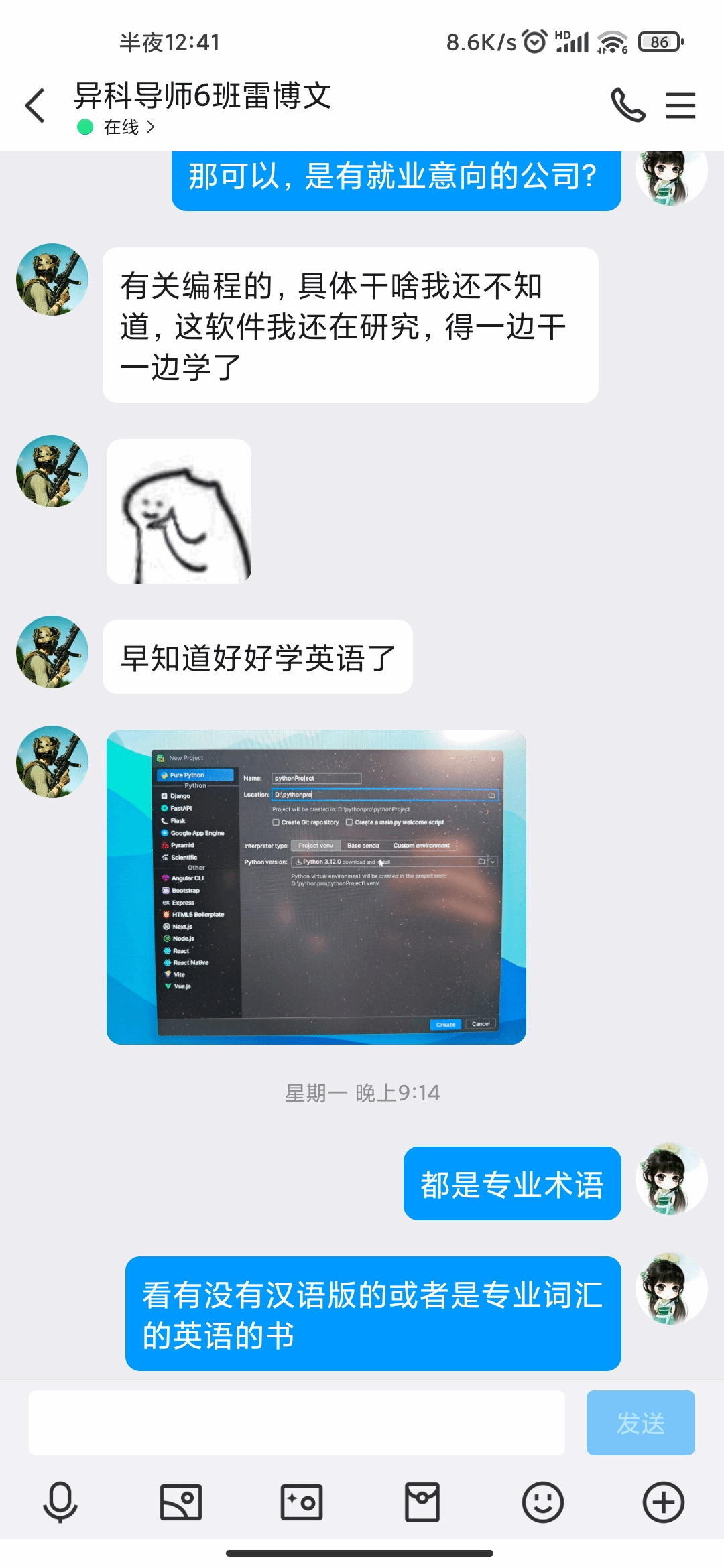 异科导师武桐与杨芳在寒假期间分别就学生的就业问题与考研问题与学生进行了线上交流活动。两位老师都及时关心同学们就业问题,鼓励学生积极就业,多参加招聘会,寻找合适机会。并积极发布一些岗位信息;询问同学们返校情况等。武桐老师表示,所带学生们即将进入大学学习生涯的最后一学期,她将站好最后一班岗,给予帮助和关心,陪伴学生度过最后的大学时光。杨芳老师同样实时关注学生的就业动态以及考研情况,并给学生提供相关的指导。此外,春节来临,异科师生互送祝福,共同展望美好的未来。