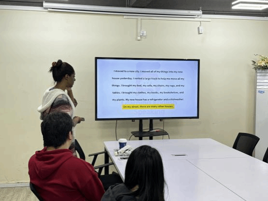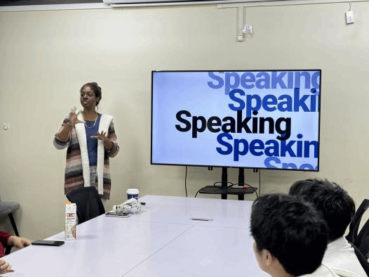 在自我介绍后,外教Kristen带领同学们进行口语训练,另外正式进行主题的Speaking,本次的Speaking旨在提高参与者的实际应用能力。在本环节中,同学们畅所欲言,模拟真实场景进行对话。通过与外教的互动,大家更加深入地了解了英语在日常生活中的运用,同时也增强了自信心和表达能力。