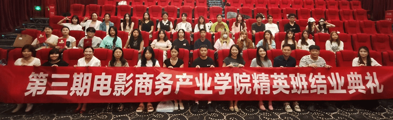 6月19日下午,万画影城3号厅内星光熠熠,电影商务产业学院第三期精英班结业典礼在此隆重举行。电影商务产业学院副院长张云潇、万画影城总经理兼电影商务产业学院副院长杨磊、北京精彩时间文化传媒有限公司西南总监肖异女士以及电影商务产业学院全体师生共襄盛举,共同见证这一意义非凡的时刻。
