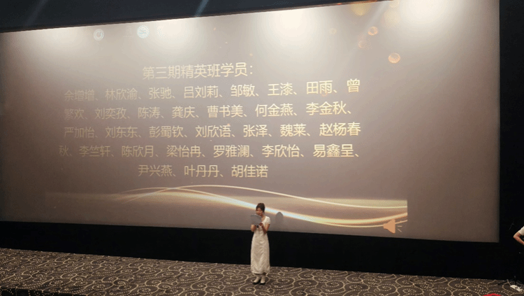 张云潇副院长再次走上台前宣读了第三期精英班的结业名单。她首先对学员们一学期的辛勤付出表示肯定与赞扬,并鼓励他们在未来的道路上继续努力、不断进取。随后,她逐一宣读结业名单并为每位学员送上最真挚的祝福。现场观众纷纷起立鼓掌为这些即将踏上新征程的学员们送上最美好的祝愿。
