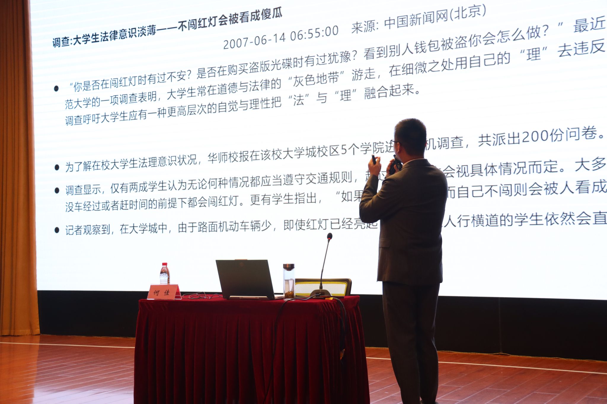讲座开始,何佳律师指出大学时期正是大学生逐渐走向社会的过渡期,他们需要拥有一定的法律意识以应对可能出现的法律风险。在讲座中,何佳律师详细介绍了大学生应该具备的法律意识,包括了解国家法律法规,遵守法律纪律,增强法律素养,了解常见的法律问题等。他提醒大学生们要牢记那句“不知法,不等于无罪”的名言,以避免在日常生活中遇到不必要的麻烦。