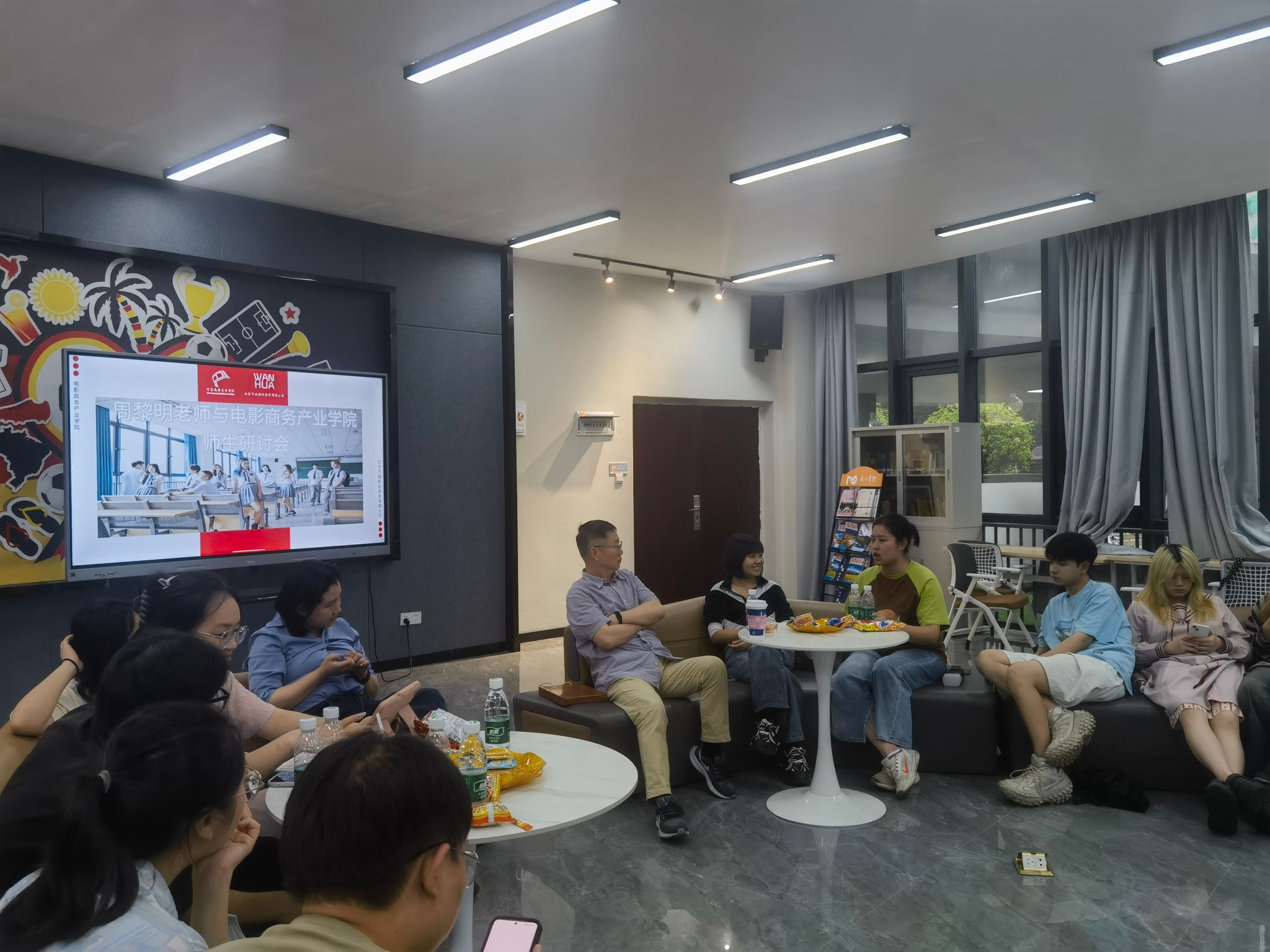 为深度探讨电影商务领域的未来走向与机遇,2024年6月3日下午13:30,电影商务产业学院于中德创意工坊举办师生研讨会。此次研讨会隆重邀请到电影行业大咖周黎明老师到场,与电影商务产业学院师生面对面交流行业经验。本次会议以座谈会的形式展开,由电影商务产业学院第三期精英班班主任晏莉老师主持,首先对此次研讨会的举办主旨及到场嘉宾进行了介绍。