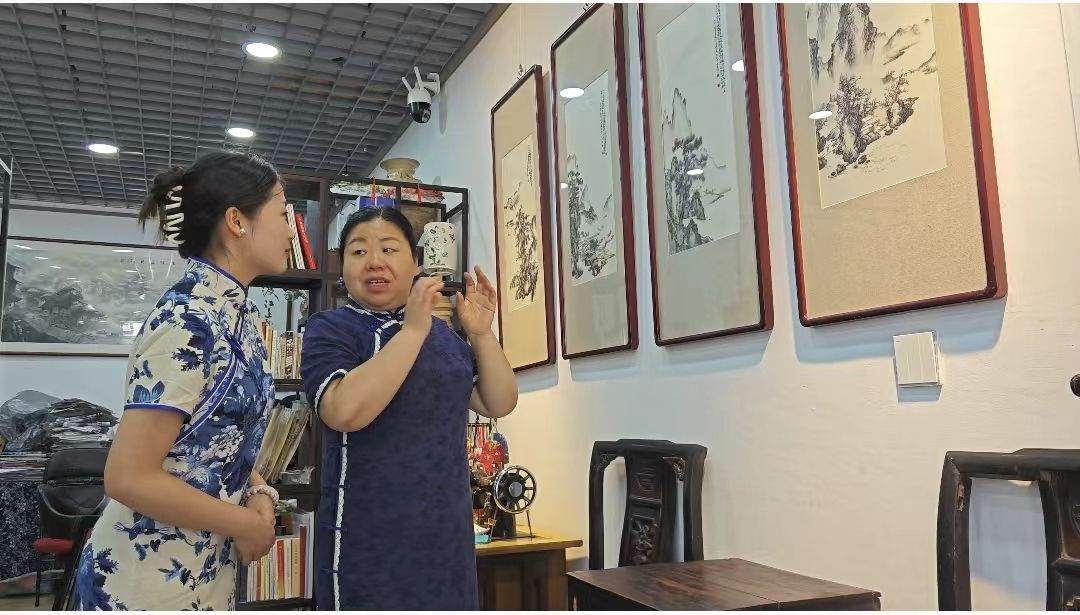 作为“首席大师工作室”的单大琼老师,不仅是高级工艺美术师,还荣获重庆市五一劳动奖章、并在2023年享受国务院政府特殊津贴专家。进入大师工作室,同学们被众多作品所吸引,有捕捉老鼠的小花猫,有抱着竹子的国宝熊猫,有在水里游动的锦鲤,有重庆市的市花山茶花……一针一线描绘出了生活中的各种事物,同学们看得入神,不时发出惊叹之声。