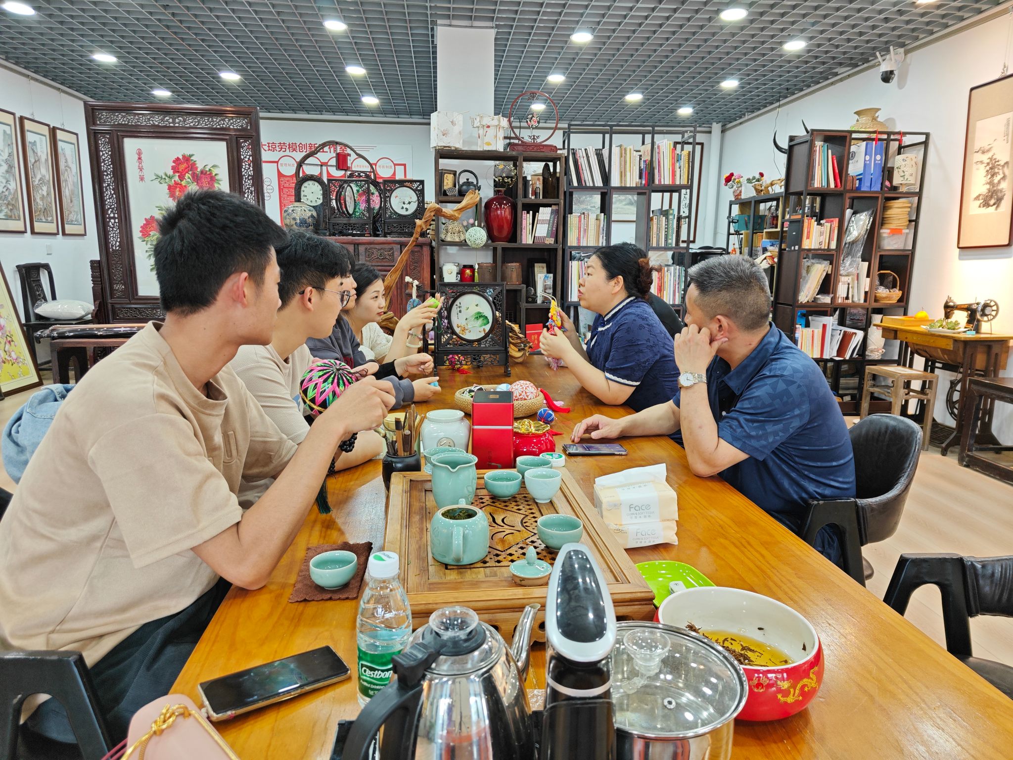 最后,在李凤勤老师的引导下,同学们围绕单大琼老师的艺术生涯、蜀绣的创新发展以及传统技艺的传承等进行了深入的交流与探讨。此次“非遗研学”活动让同学们深刻体会到了蜀绣针法的多样化与独特之处,以及纹样设计的丰富与精致。同时,单大琼老师身上所展现出的那种对艺术的专注与执着,更是让同学们感受到了工匠精神的伟大与崇高,值得同学们深入学习和借鉴。