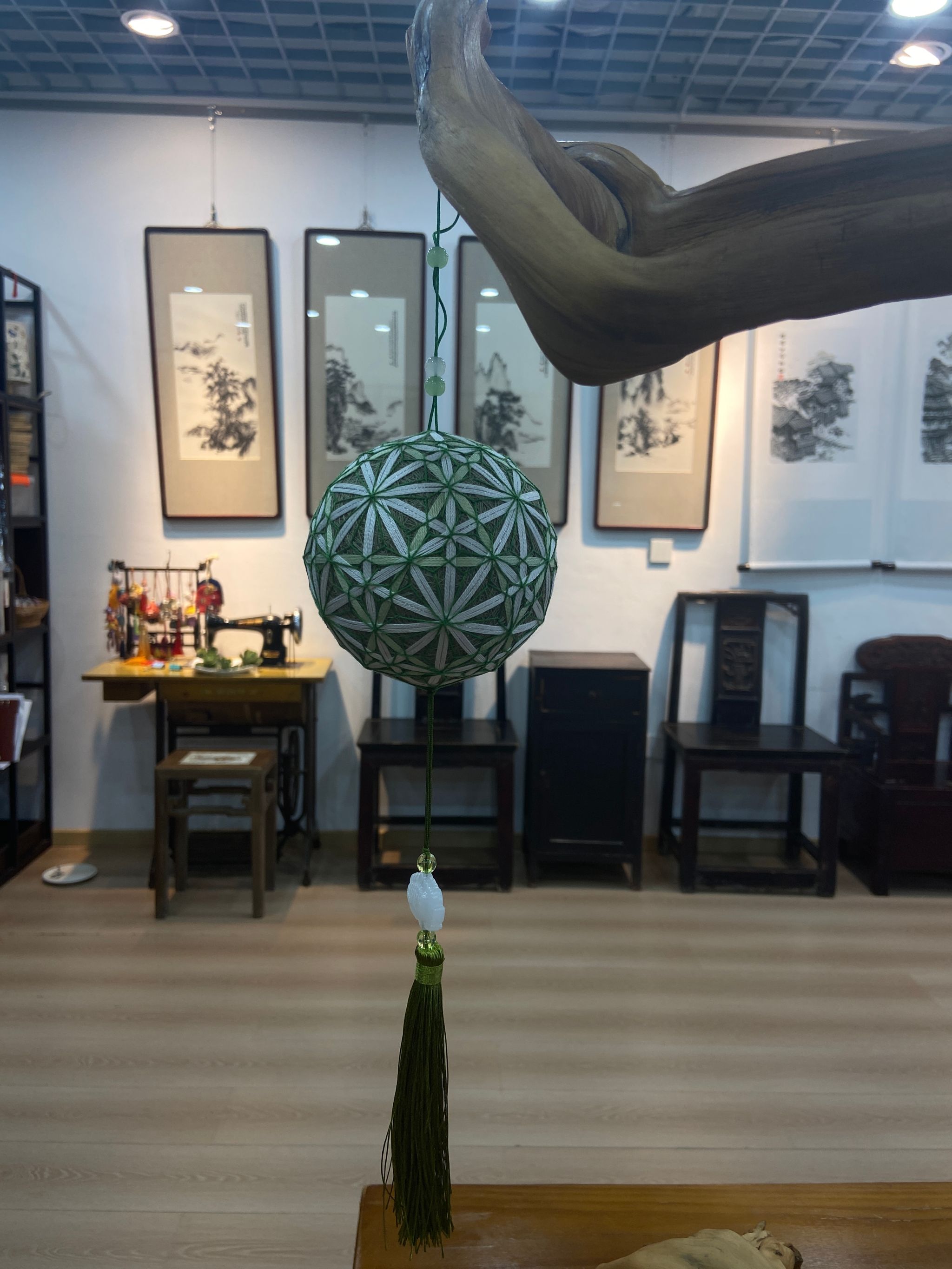 谈及蜀绣的发展与传承,单老师指出蜀绣在当今时代面临的挑战,过去老式的图案成品并不受年轻人的喜爱,所以蜀绣也在创新,现在蜀绣并不单一运用在服装上,还制作在发簪、耳饰、香囊等精致小巧又实用的东西,这样既吸引了更多的年轻人,又将蜀绣的魅力绽放了出来。“比如说这只猫的毛,是有层次的,每一层的毛色不一样,且有明有暗,这就要摻杂很多种颜色和搭配极细的丝线,才能绣出猫的栩栩如生”。单老师耐心地为大家讲解了蜀绣技法的复杂与独到之处,同学们参观了多幅蜀绣作品,对蜀绣的严谨细腻、淡雅清秀和优美流畅赞叹不已。