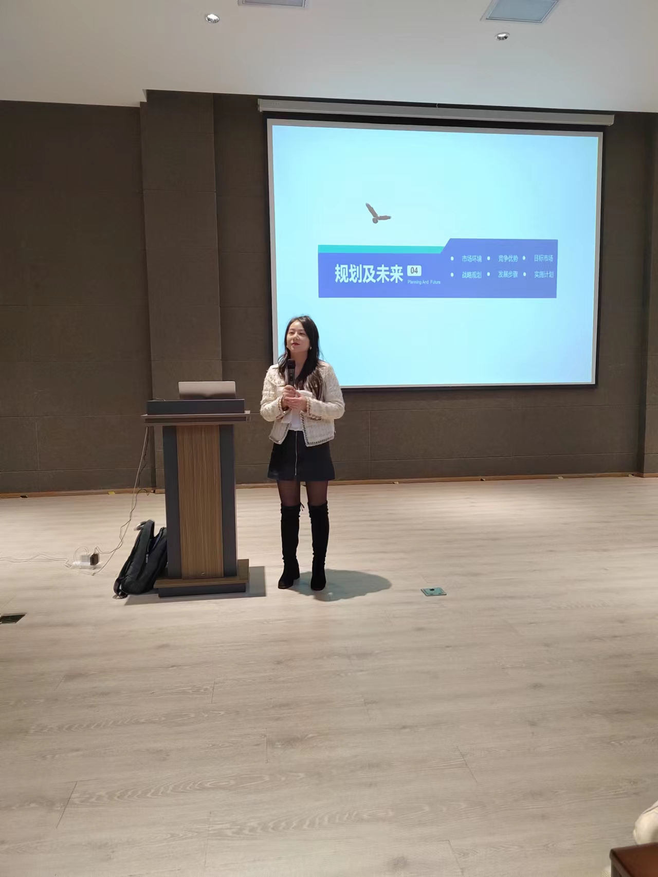 最后,淬炼·商学院副院长陈晓曼做了总结发言,她首先感谢刘总和何总能抽空到移通学院跟同学们面对面地交流。她指出,这次讲座是第一次真正把课程作业和合川本地有特色的项目融合在一起,以前学生完成市场营销作业更多是从网上查找资料,这样的资料不够真实,而通过这次分享和交流,同学们获得了更为真实和直接的研究素材,为撰写报告提供了依据。商科专业的学生需要深入一线去获取真实的资料,接触重庆本土有特色的企业,沉浸式地去参与项目的研究,这样才能成为合格的新商科人才。最后,陈院长对组织这次活动的老师也表达了感谢,她也希望以后商学院能多举办企业高管与同学进行对话交流的活动,为课程研究和改革提供支持。
