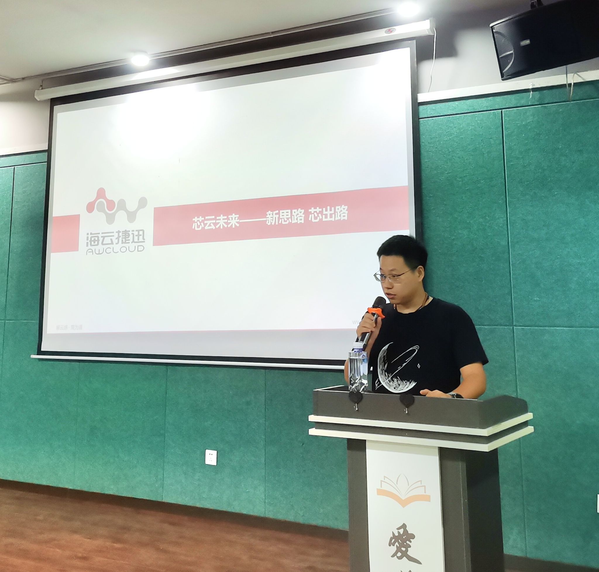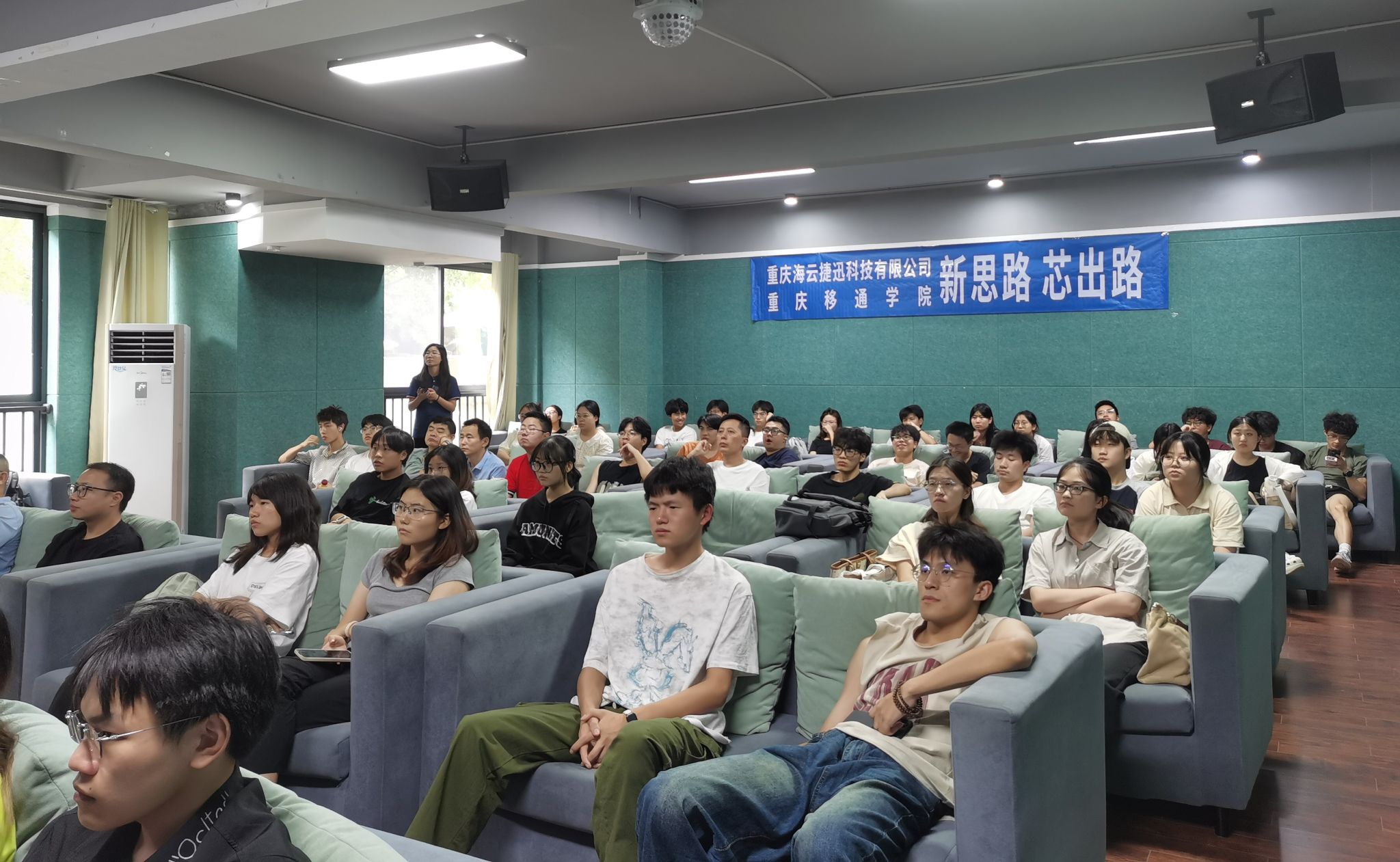 为推动教学与实践深度融合,达成理论知识向实际应用的高效转化,使师生切实感受 FPGA技术在产品中的实际应用,9月25日下午14:00,通信与信息工程学院学科基础教研室在爱莲书院多功能影音厅举办了一场主题为 “新思路 芯出路” 的讲座,此次活动由学科基础教研室的王朝卿老师主持,特别邀请了海云捷迅科技公司的何雨龙和徐诗凡工程师作为主讲嘉宾,教研室全体教师以及2024级电子信息类专业的新生参与了此次活动。