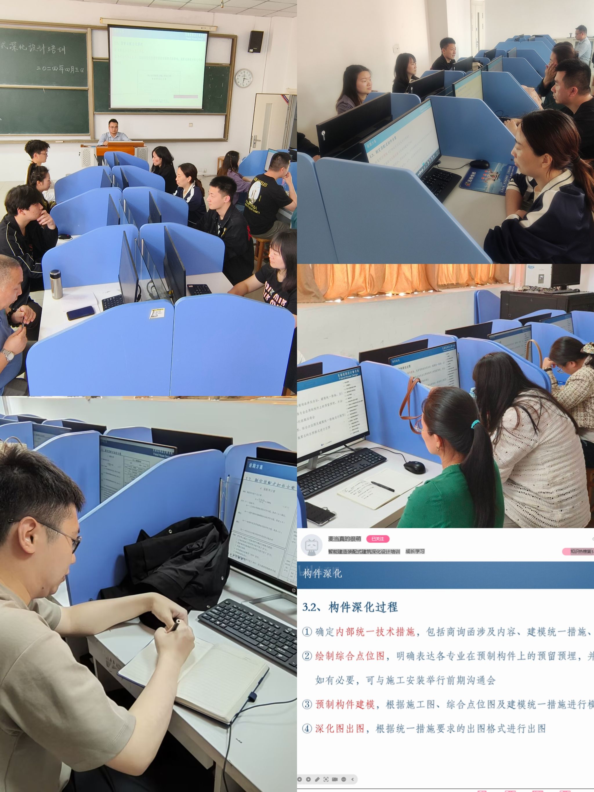 为贯彻《重庆移通学院“内涵建设与质量提升”主题年活动方案(移通教〔2024〕4号)》文件精神,加强智能建造行业的技术交流、提升教师实践教学能力,数字经济与信息管理学院于2024年4月3日下午13:30在S3405教室开展了“智能建造装配式深化设计培训”的专项活动。本次培训活动由工程管理教研室主任周梦娇老师主持,学院全体专职教师参加。