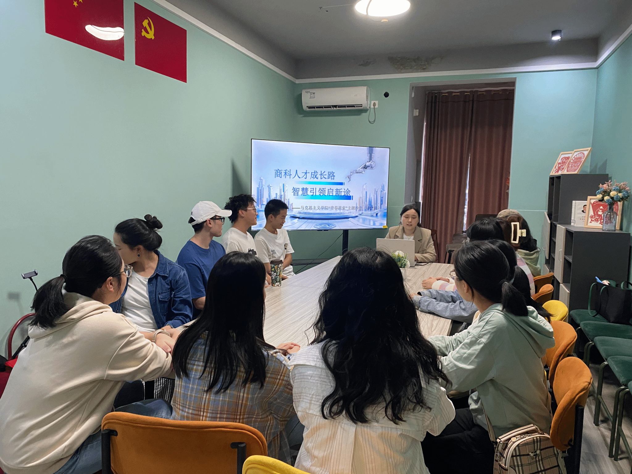 为深入交流商科人才的培养路径和成才经验,为广大的青年学子提供宝贵的智慧启迪与实践指导,帮助他们在未来的职业生涯中更好地定位自己,实现个人价值与社会贡献的双重飞跃。10月9日下午,马克思主义学院“概论”课教研室在花果书院多功能活动室开展了第67期“青春思索”主题沙龙活动——商科人才成长路 智慧引领启新途。本次活动由马克思主义学院“概论”课教研室教师任捷雅、肖爱玲、黄鑫老师主持,部分学生代表参加。