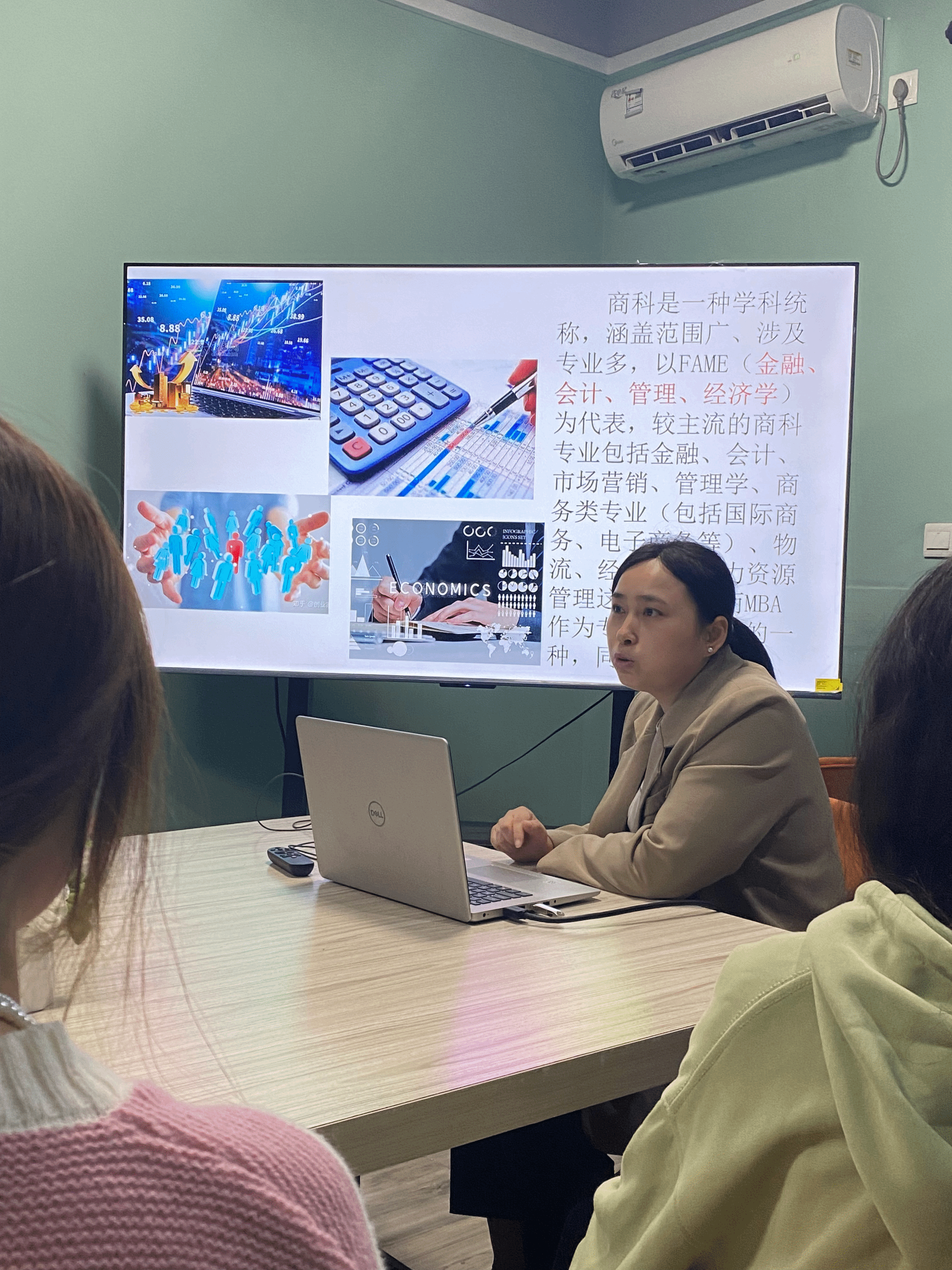 活动伊始,任老师为大家简要介绍了商科的基本概念和涵盖领域,从经济学、金融学、管理学等多个角度阐述了商科的重要性和应用价值。她提到,商科不仅仅是冰冷的数字和公式,更是与人类生活和社会发展息息相关的学科,它关乎经济活动的运行规律,也关乎企业管理的智慧与策略。