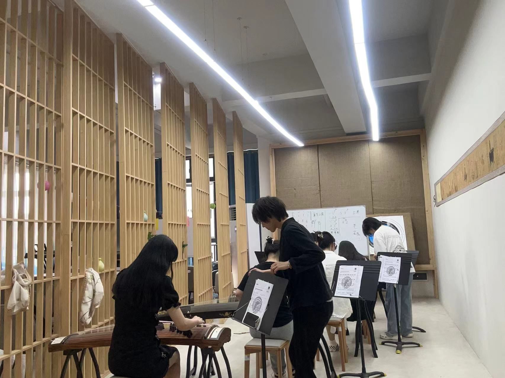 5月15日,中华传习所举办了一场古筝工坊活动。在王菲老师的带领下,零基础的学生们开始了对古筝这门古老民族乐器的探索与学习。活动伊始,主理人向师生们介绍了古筝的历史和文化背景,让学生们对古筝有了初步的认识。随后,在专业古筝老师的指导下,学生们开始了古筝的入门学习。从坐姿、手型到拨弦技巧,学生们在老师的耐心教导下,逐步掌握了古筝演奏的基础知识。尽管是零基础,但学生们的学习热情高涨,很快就能够弹奏出简单的曲目。在工坊的互动环节中,学生们有机会向老师提问,与老师进行深入的交流。老师不仅解答了学生们在古筝学习上的疑惑,还分享了古筝艺术的深层魅力和个人的艺术感悟。
