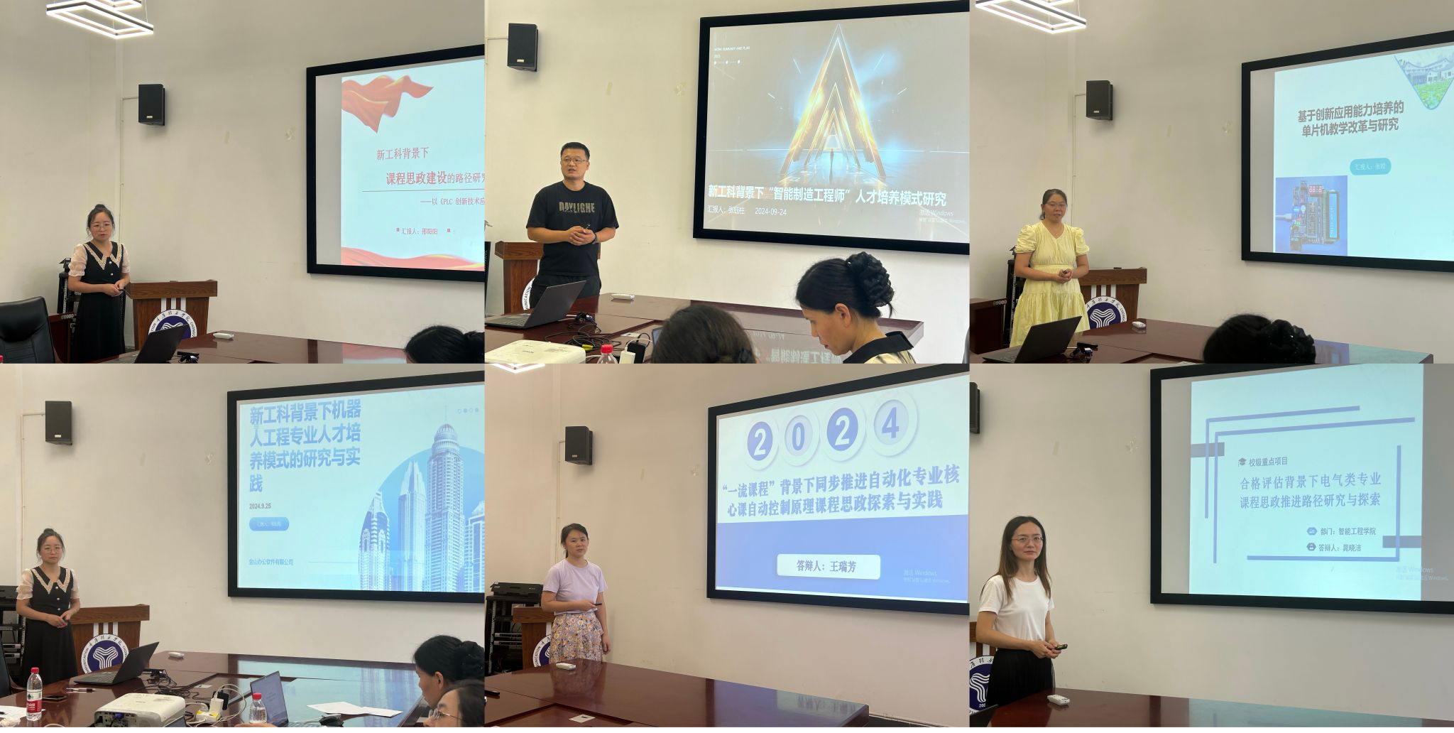 会议伊始,关正伟老师详细介绍了各位专家评审和本次答辩的流程。随后,张钰柱、晁晓洁、邢阳阳等六位项目组负责人分别从课题研究背景、研究主要思路、研究方法以及研究成果等方面进行了详细的汇报。本次答辩项目涵盖了课程思政、提升学生学习兴趣及应用、课程优化、专业人才培养模式创新等多方面的内容。