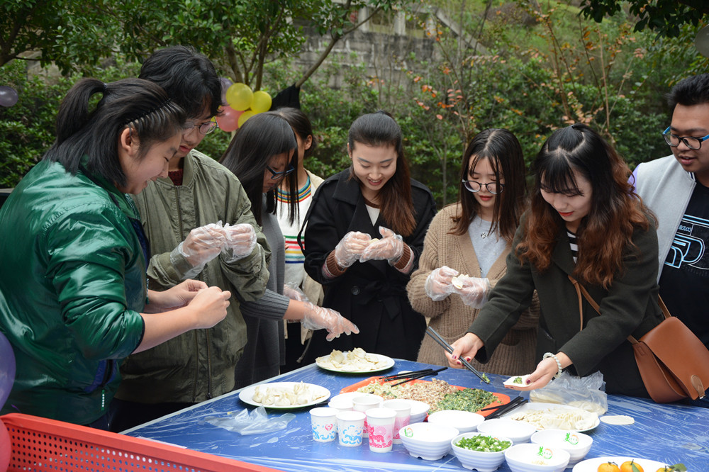 “立冬到,饺子好,家人齐上阵,合家团圆好……”11月12日下午两点,鱼城书院举行的“天涯海饺,缘聚书院”活动正式开始,来自鱼城书院的80余名同学,按照各个寝室分成小组,进行了包饺子活动,以家为珍,以真为美。