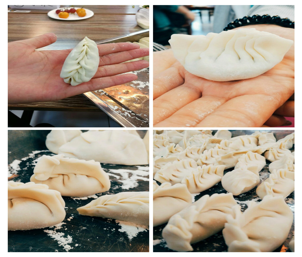 一切工作准备就绪,北山饺子活动正式开始啦!瞧!他们配合的多默契,同桌的小组成员一些准备饺子皮,一些搅拌肉馅儿,其乐融融的气氛感染着在场的每一位同学,俨然是最亲近的家人一般。我们北山的部长担任每桌的“桌长”,维持整个小组的秩序;有时候也探头去跟周围的同学们讲解包饺子的要领;也仿佛一位细心的小家长,时刻提醒着同学们注意安全,活动井然有序的开展。参加活动的伙伴们踊跃地展示自己的包饺子活动,各种形状的饺子展现了同学们的“心灵手巧”,当然我们在包的过程当中,也在饺子里包了硬币,表示北山对同学们的祝福。