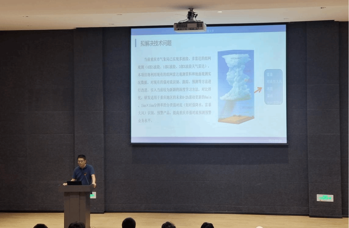 讲座内容分为:“人工智能之深度学习算法”、“基于雷达组网观测的重庆强对流预报预警技术研究”、“基于GAN的雷达数据生成”、“基于模糊逻辑的水凝物识别”、和“基于语义分割的电磁干扰识别与抑制”五个部分。