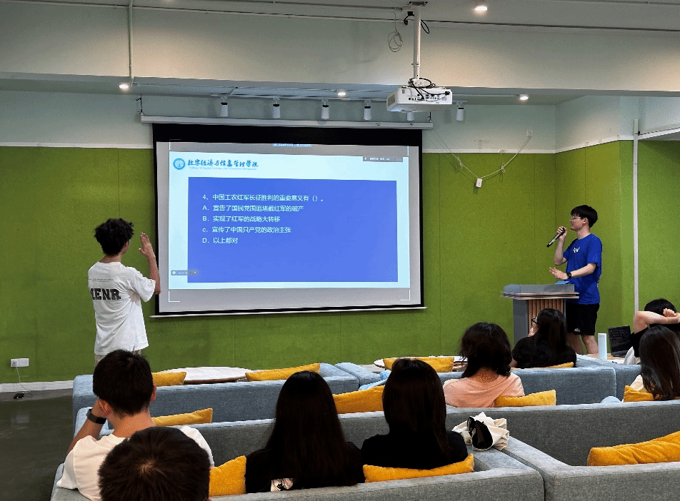 在最后的“习声回响”环节中,选手们通过抢答的方式,以“学习强国”学习平台“第一频道”等视频内容为答题依据,展现了他们的快速反应能力和对知识的全面掌握。整个比赛过程紧张激烈、精彩纷呈,充分展示了数字经济与信息管理学院党支部的凝聚力和战斗力。