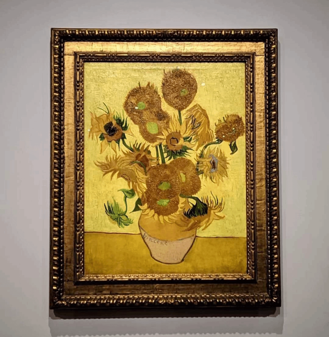 大家来到了梵高的著名作品《向日葵》系列展览。这一系列作品是梵高在阿尔勒创作的代表作之一,这些作品以鲜艳的色彩和生动的笔触展现了向日葵的美丽和生命力。