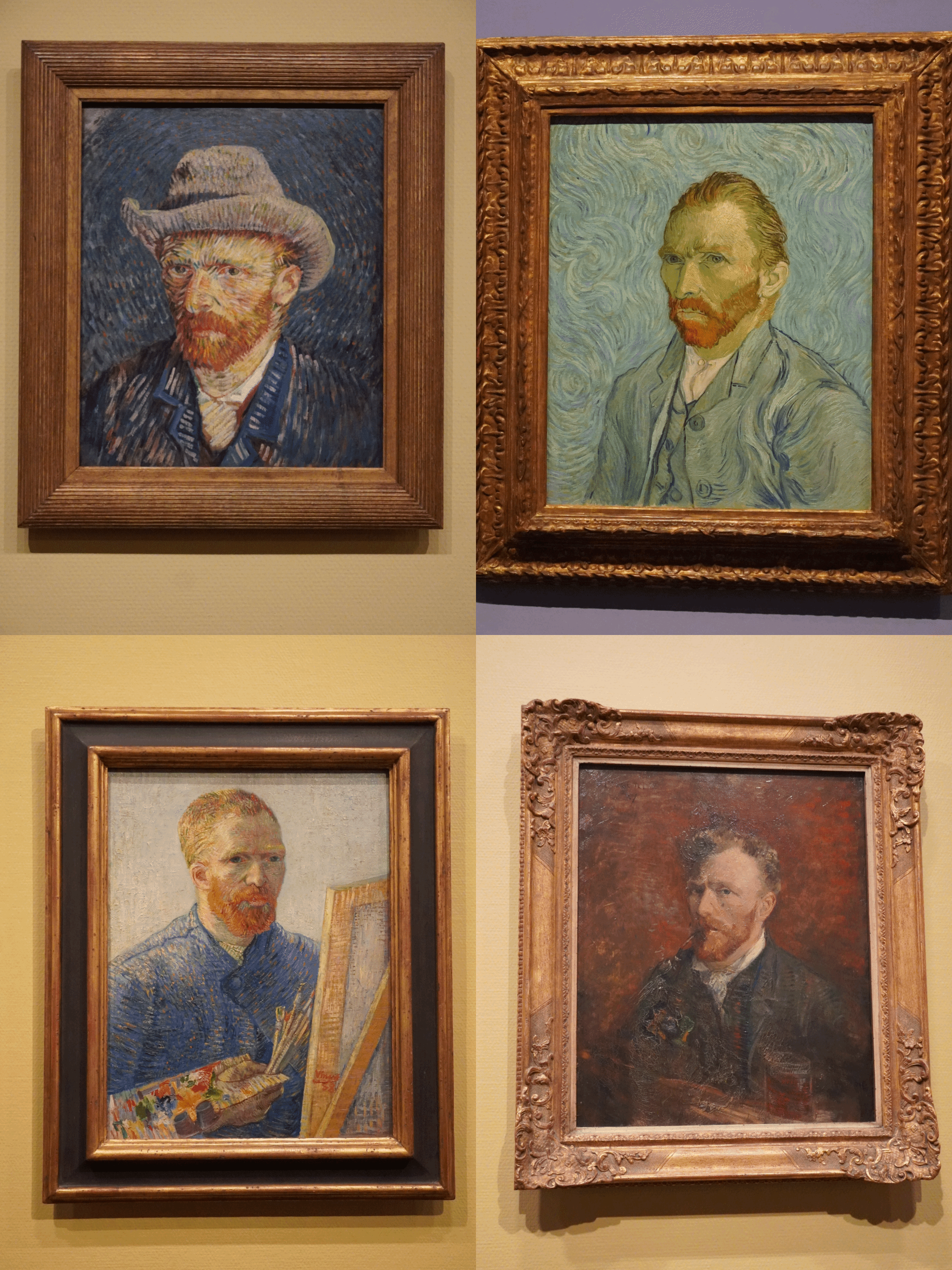 梵高的自画像系列,记录着他在不同阶段的心境和心情。他常常选择将自己表现为面容严肃、沉思或忧郁的形象,用粗糙的笔触和强烈的色彩表达内心的情感和精神状态,揭示了他内心的痛苦和孤独感,也许只有梵高最能解释那句“天才在左,疯子在右”。