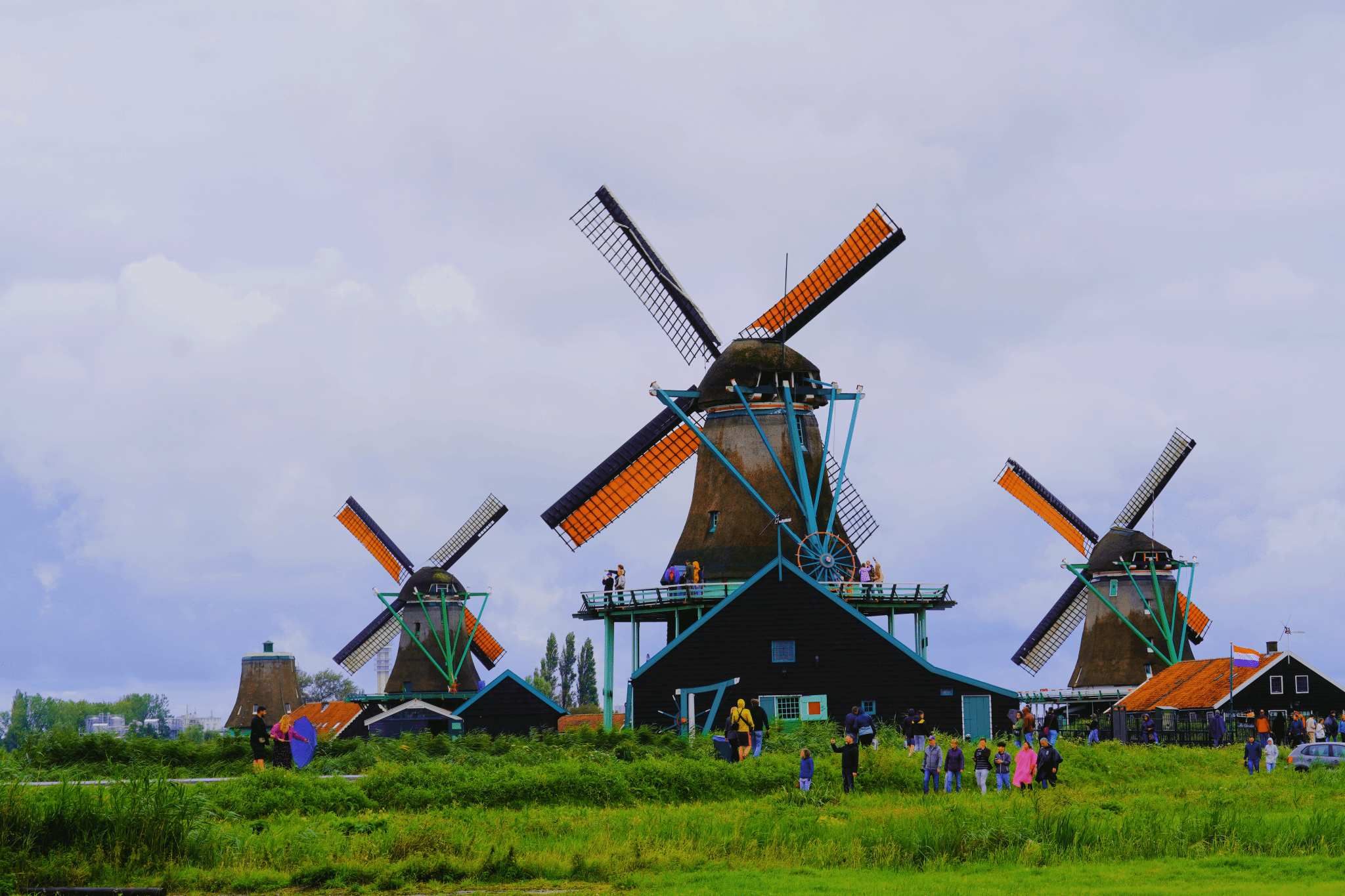 下午,我们来到了坐落在札恩河畔的桑斯安斯风车村(Zaanse Schans),这是荷兰最具代表性的风车村之一。来到风车村,高耸的风车就映入眼帘,它们犹如雄鹰展翅,屹立在广袤的田野上。这些古老的风车是荷兰传统工艺的象征,也是人们对于历史文化的宝贵遗产的尊重。
