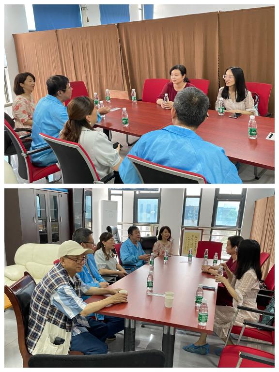 董事长孔策邀请老师们到会议室进行座谈交流,介绍了公司主要生产电子产品、电子元器件、电气机械及器材,也讲解了公司对通信设备的研究、开发、制造。副校长孙玺则向董事长孔策介绍了学校的各个学院,希望充分发挥教育资源优势和本土企业资源优势,既能促进高校就业,也能提高地方经济社会发展能力。