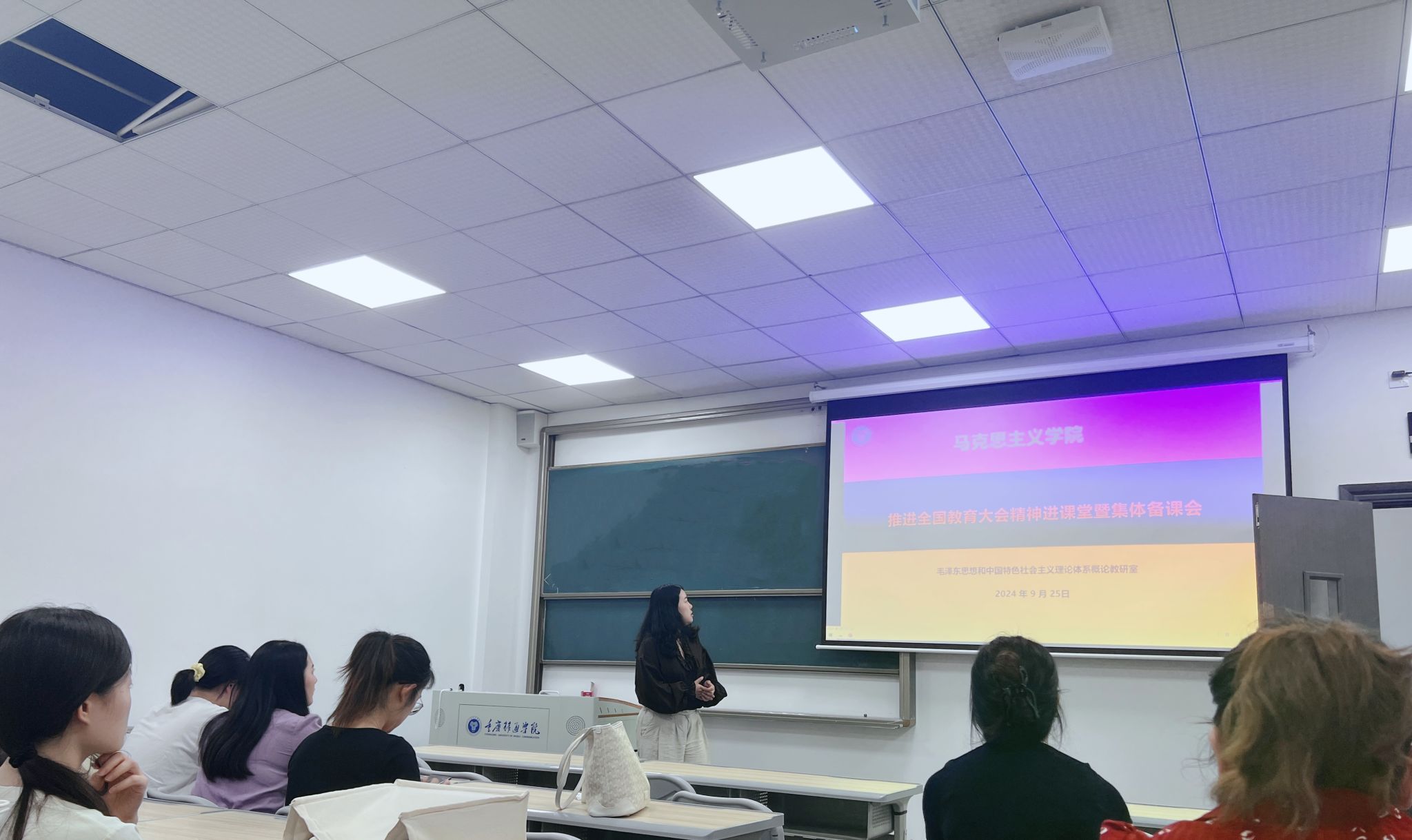 为深入学习贯彻全国教育大会精神,及时将党的创新理论融入课程教学,坚持思政课建设与党的创新理论武装同步推进,推动思政课内涵式高质量发展。9月25日,马克思主义学院“概论”课教研室组织开展了推进全国教育大会精神进课堂暨集体备课会。本次会议由教研室主任毕毓璟老师主持,教研室全体教师参加。