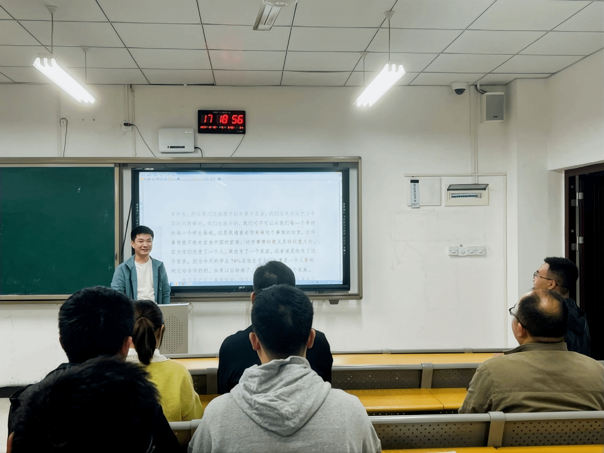 智能车辆教研室全体教师于10月30日下午1点在竹逸书院A202进行了集中学习彭鸿斌董事长讲话的活动。会议由教研室主任陈龙灿主持,新进教师米俊松、张强领学。此次学习围绕彭鸿斌董事长的重要讲话展开。全体教师深入领会讲话精神,包括对教育理念的深刻解读以及对学生培养方向的指引等内容。在学习过程中,教师们积极参与讨论,结合自身教学实践,思考如何更好地将董事长的理念融入到日常教学工作中。新进教师米俊松和张强通过自身的学习理解,为大家详细解读了部分重点内容,引导全体教师更加深入地理解讲话核心要义。通过此次集中学习,智能车辆教研室全体教师进一步明确了教学方向,将以更加饱满的热情和更加科学的方法投入到教育教学工作中。