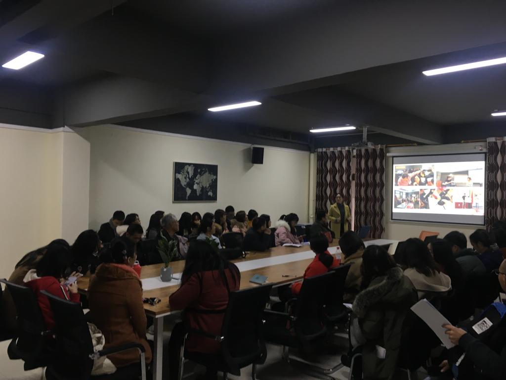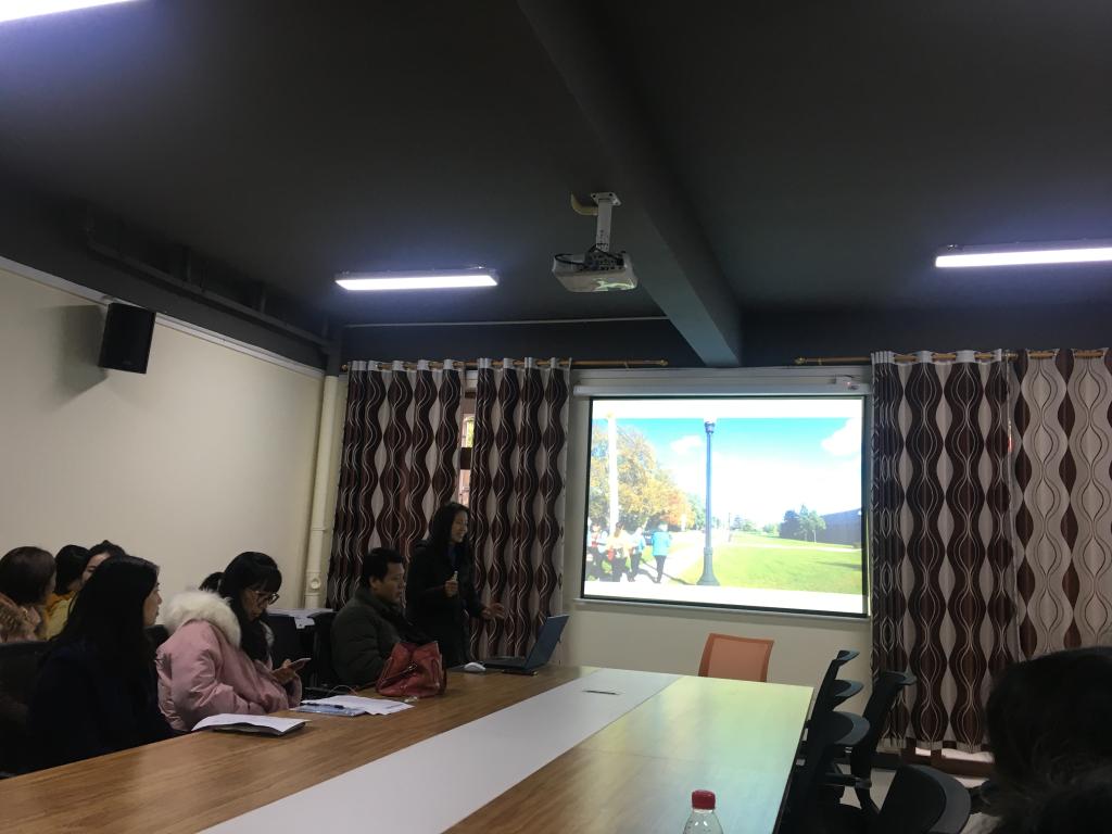 首先,魏铃老师汇报了她2019后暑期前往美国北伊利诺伊大学(NIU)交流访问的体会。魏老师感叹,虽然在平日的教学里美国文化早已深入骨髓,但当自己真正跨越半个地球,脚踏那方热土时,又有了些许陌生感与新奇感;纯英文的语言环境,金发碧眼的白种人,自由得令人有些不可思议的美国高等教育,互动性极强的美式课堂,一望无垠的美国中部农场,全美国人为之疯狂的棒球赛……在短短的十五天里,让她对美国文化课程的授课方式、美国中部的风光风情和人文习俗有了全新的理解和认识。魏老师通过参与体验课程,深刻体会到教学艺术的本质不在于传授的本领,而在与激励,唤醒和鼓舞。在课堂上,教师是引导者,是点拨者,也是激励者,教师应对学生学习的某一特定过程或结果给予正确的话语评价,对学生的学习活动适时给予恰当的表扬、赞许,这种强化机制能激发和维持学生的学习积极性和主动性。在教学中,教师应有一双善于发现美的眼睛,多关注学生的优点、长处,并给予鼓励和表扬。同时教师也要有一颗宽容的心,对于大学生而言,英语学习虽已多年,但它始终是一门“外语”,这就意味着--- 学好不易,犯错难免。因此教师在英语教学过程不应挑剔,刻薄地要求学生尽善尽美,而是通过适时地表扬和赞许,激励他们,帮助增强其自信和成就的动机,让他们感受到学习的快乐,从而更好地激发他们的学习积极性和主动性。